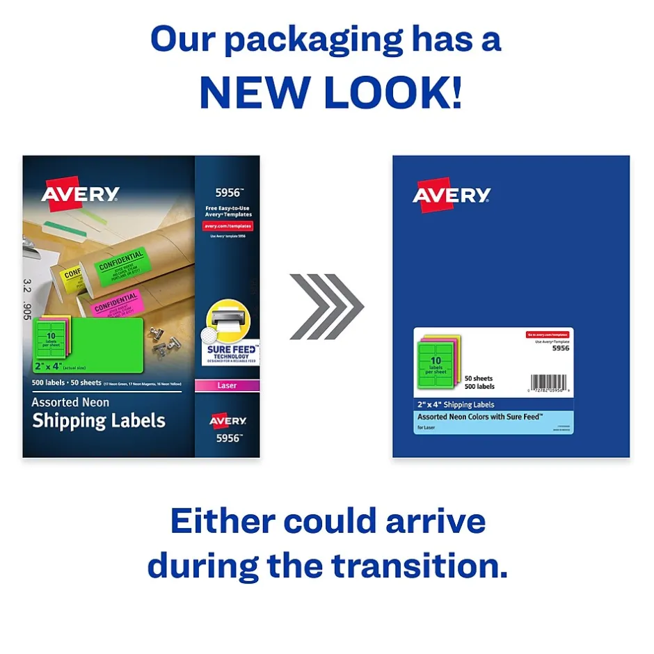 - Expect high-quality, smudge free printing results with neon shipping labels from Avery that are optimized for laser printers