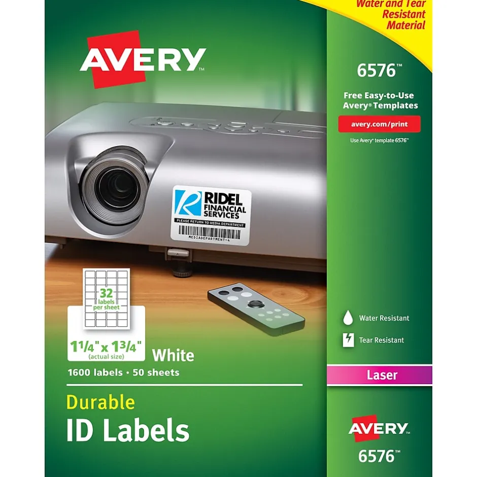 Identify property and display easy-to-read information with Avery(R) durable ID labels featuring TrueBlock(R) technology. Use for bin labels, barcode labels, asset tags and safety and warning labels. TrueBlock(R) labels completely cover up what’s underneath, so you can re-label items, shelves or containers without distracting marks showing through. Strong polyester label material is waterproof and resistant to scuffing, tearing and smudging. Extra-strong adhesive makes sure labels stay permanently attached. Stands tough in extreme temperatures and high-traffic areas. Make custom labels with free templates and designs, and online barcode generator helps you add a bar code, upc code or serialized numbers in just a few steps. Compatible with laser printers.