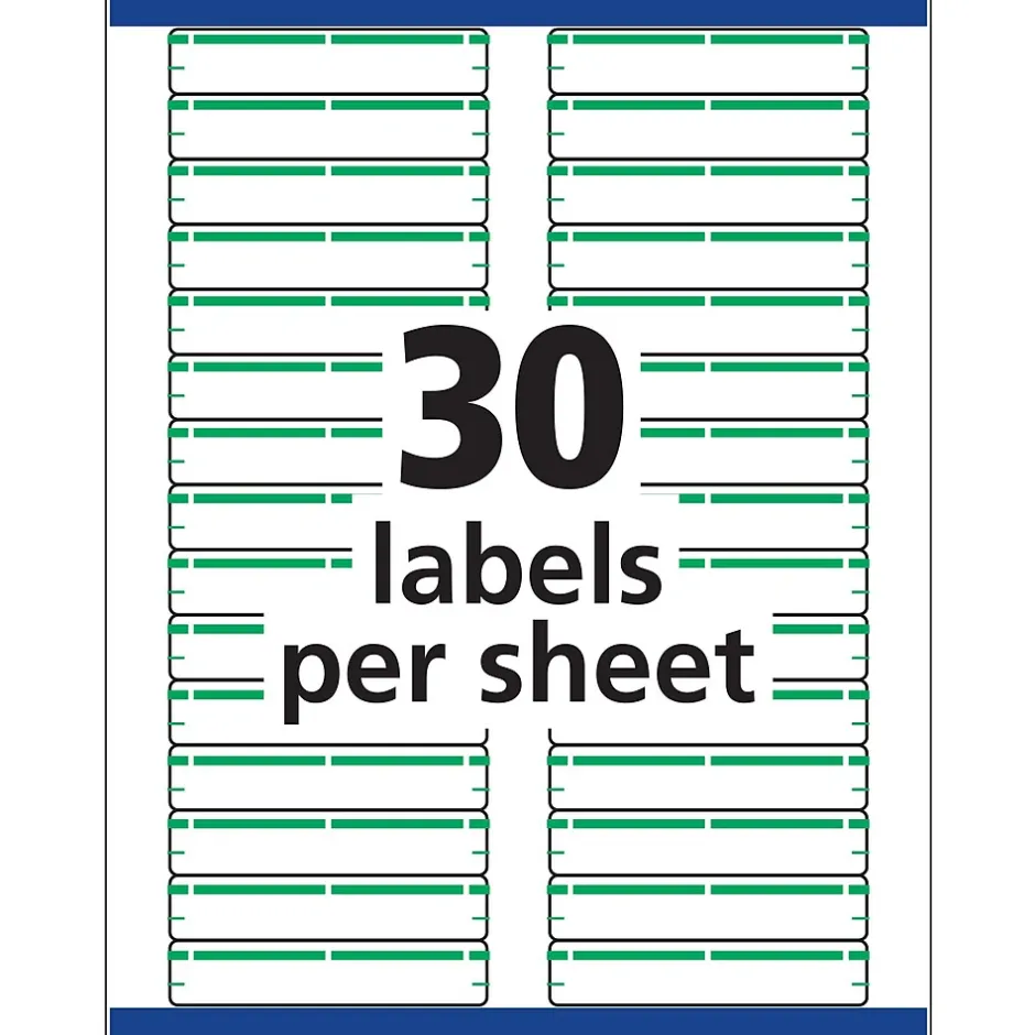 Color code your file folders, documents and binders with these file folder labels featuring green accents. Printable labels are engineered with Sure Feed(R) technology for a reliable feed through your printer, preventing jams and misalignments—and no more wasted labels. Save money reusing file folders with these labels featuring TrueBlock(R) technology. Labels are designed to completely cover up everything underneath, from markings to existing labels, and are guaranteed to stick and stay without curling or lifting. Custom file folder labels are available in a variety of colors. The green file folder labels 1/3 cut tabs can also be used for projects such as identifying objects and organizing containers. Customize with free templates on Avery(R) Design & Print (avery.com/templates) to create your own filing system. Printable with laser and inkjet printers.