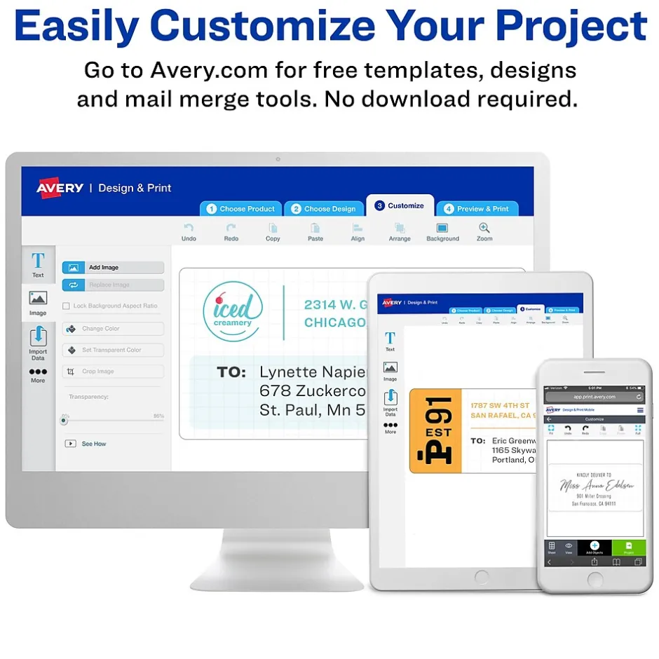 Get large shipping and mailing projects out the door quickly and easily with our White Shipping Labels featuring TrueBlock Technology. These bright white labels completely block out any writing underneath so your boxes and envelopes have a neat and professional appearance every time. The pack of 3,000 labels is perfect for all your high volume projects. Easily customize with your logo or graphics using our free designs and templates . Then just print and ship. These labels also feature exclusive Avery Sure Feed technology to improve print alignment and avoid jamming.
