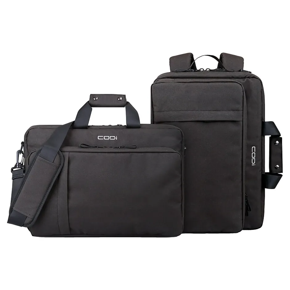 Proud to play a part in reducing ocean-bound plastic, CODi’s new Terra Hybrid Briefcase/Backpack delivers. This briefcase/backpack has exterior materials made 100% from 34 recycled plastic bottles. All of the air mesh, webbing, and lining are made from ocean-bound plastic, as well. Go from business to casual as this bag transforms from a briefcase to a backpack by slipping the removable and adjustable padded shoulder straps out from their stow-away zip compartment. As a bonus, the removable/adjustable shoulder straps also allow you to wear this as a messenger bag. With a broad-spectrum antimicrobial coating, the Terra bag helps prevent the growth of bacteria on the product. Protect your laptop with a dedicated, padded 15.6″ compartment. Get easy access to your essentials with a front pocket and several dedicated internal compartments. Complete with rain guard protection for those rainy commutes, the Terra bag also has a breathable air mesh back panel for added comfort.