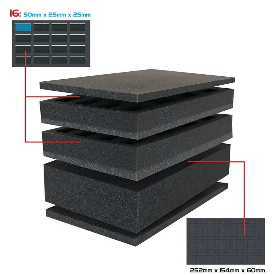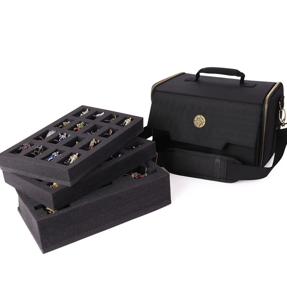 Keep your favorite party of heroes, villains, and monsters ready for action in this compact miniature figure carrying bag. It features 3 foam trays to securely store and protect your miniatures: two 16-slot trays for standard-sized figures (20 to 25mm), and a 60mm thick customizable pick & pluck tray for larger or irregular models. The bag’s padded walls provide extra protection from drops, impacts, and scratches. The versatile shoulder strap allows you to carry the bag comfortably and conveniently.