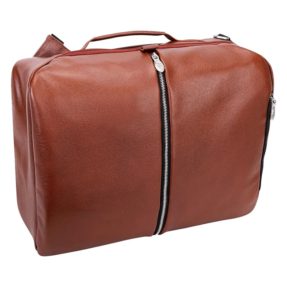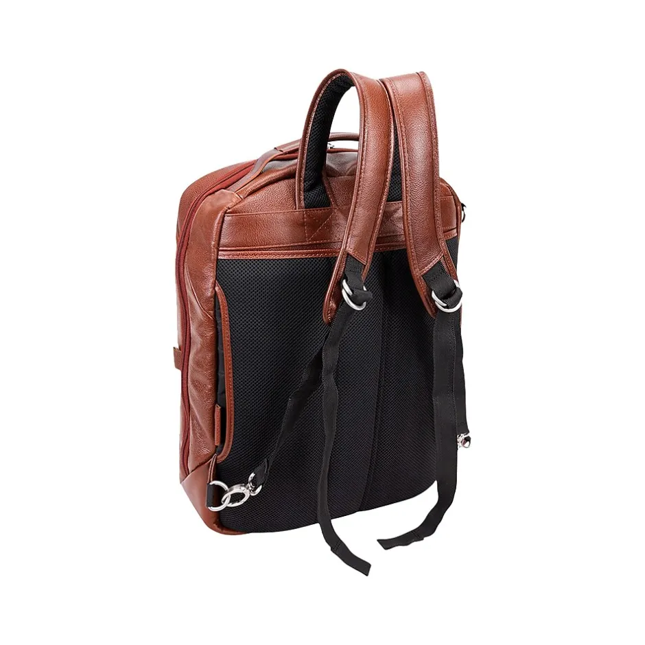 This versatile 17″ convertible travel backpack and messenger bag can carry you to your next trip fully prepared. Multiple options for the way you can carry your essentials with top or side carrying handle. Keep your business items easily accessible in front horizontal zipper compartment with interior accessory organizer. Top pocket with exterior and interior access to store cellphones and keys. Safely store your important devices in interior built-in padded 17″ laptop sleeve or the secure tablet pocket. Storage has never been easier in fully lined interior with leather trim and silver hardware. Rear exterior features ultra-padded air mesh with air flow system (AFS) and padded backpack straps. Store it on a rolling case for easier transport with a piggyback strap. Comes with a detachable and adjustable non-slip padded strap for shoulder carry.