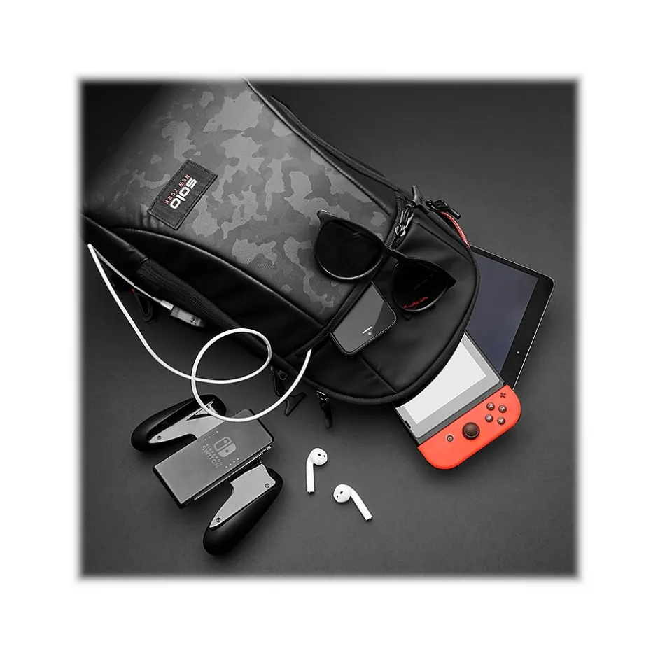 Whether transporting across the city or to another world, the Solo GLHF [GOOD LUCK, HAVE FUN] sling is built to protect your tech. Level up with this bag in whatever mission you may embark on. Features a fully padded compartment that protects tablets up to 12.9″ or laptops up to 12″ with lockable zippers. An RFID data protection pocket helps secure personal data encoded on your credit cards, IDs, and passports.
