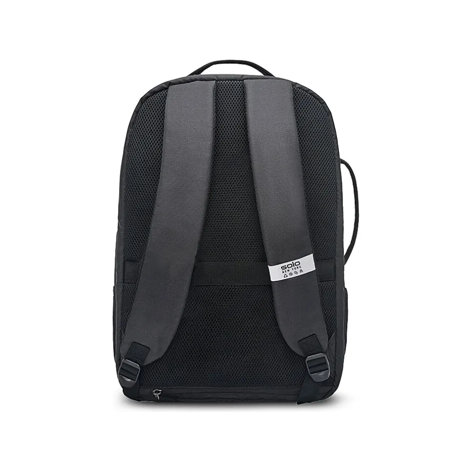 - This laptop backpack makes travel with electronics simple; made of recycled PET polyester in black