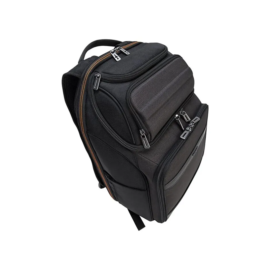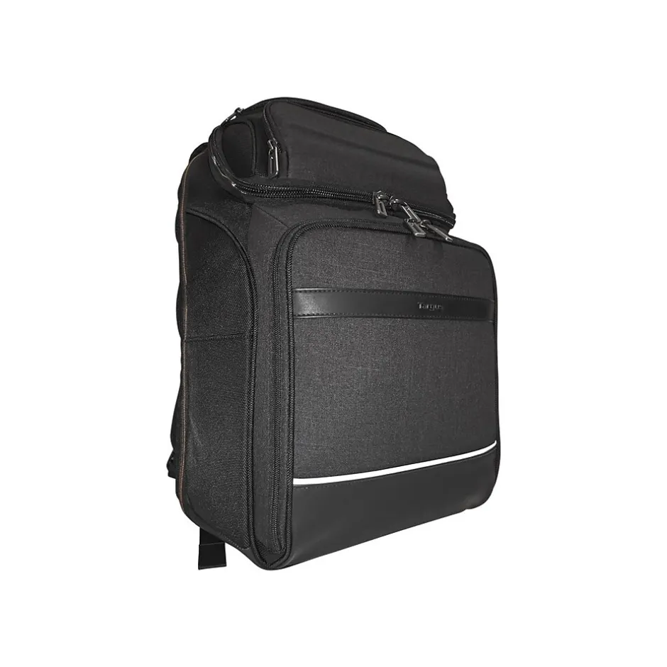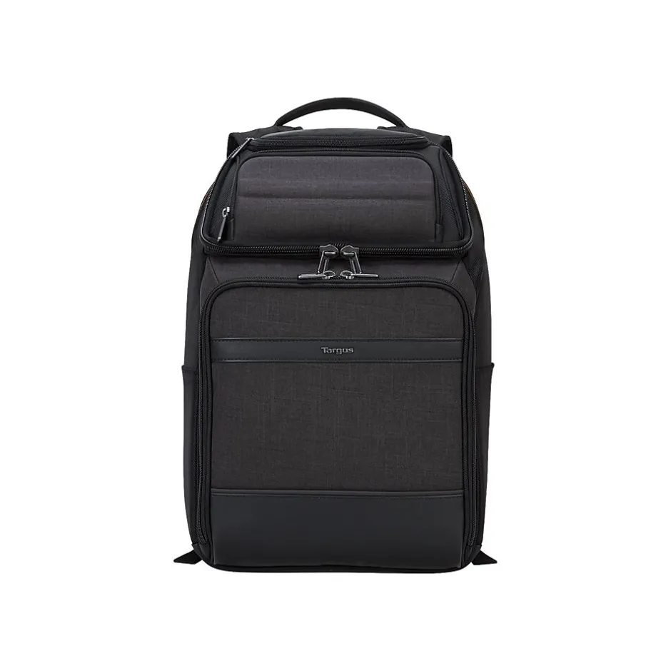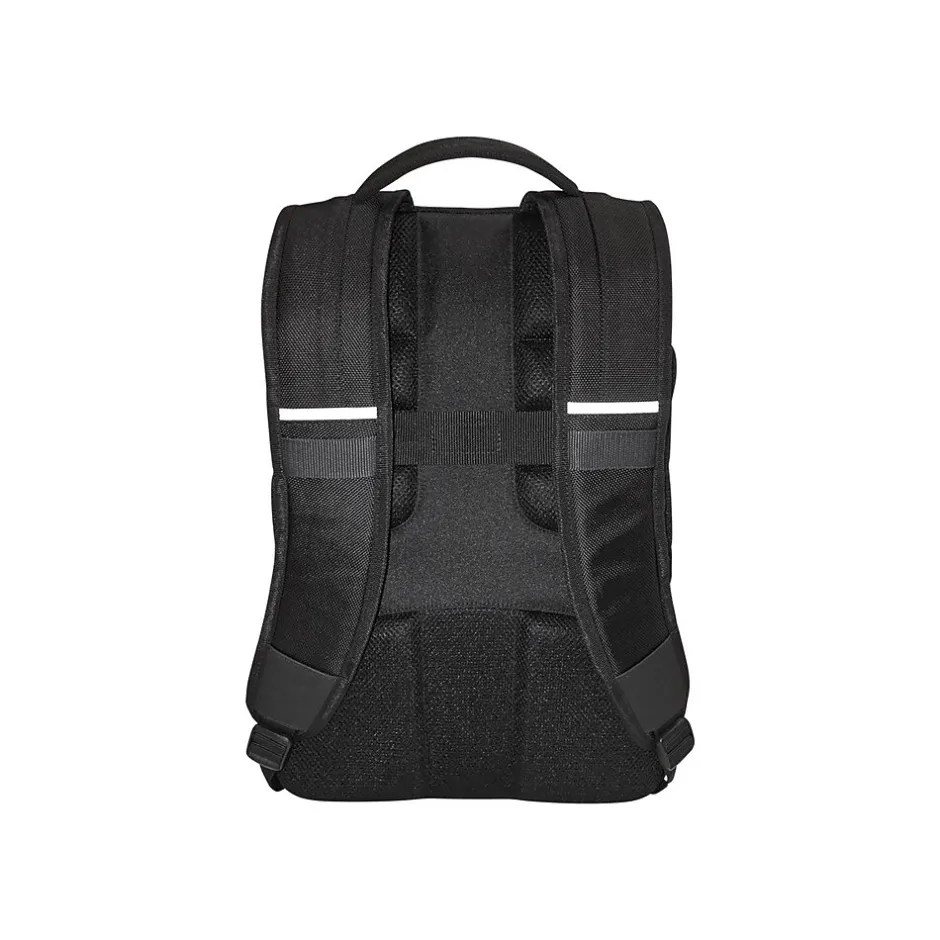 The Targus 15.6″ CitySmart EVA Pro checkpoint-friendly backpack delivers device protection and intuitive organization in a polished pack with a clean-lined frame. Its patented checkpoint-friendly design helps you fly through airport screenings without removing your laptop. Sized for laptops up to 15.6″, this bag has an extra-large main compartment that fits nearly a whole desk’s worth of supplies and organizes them with a zippered workstation and dedicated tablet nook. The soft padded adjustable shoulder straps and an air mesh back panel make it comfortable to carry. An extra-large zippered workstation has compartments for your business cards, pens, small gadgets, and other office supplies, while thoughtful features like two side pockets add to its functionality. A softly lined front pocket is covered in semi-rigid EVA protection, which makes it a great spot for storing sunglasses and cell phones. This pocket and a small stash pocket are integrated onto the front panel that unzips to reveal the interior. And there are integrated reflective accents for nighttime visibility. With a structured urban look, convenient features, and protective details, the CitySmart EVA Pro checkpoint-friendly backpack fits the way you work.