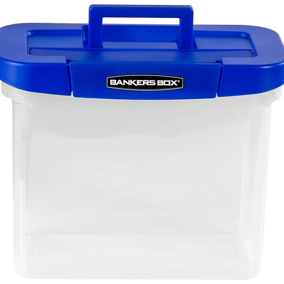 Keeping your most important files safe and organized, the Bankers Box Plastic Portable File Box offers quick transportation for documents. The letter size portable file box features reinforced corners for added strength and the modular design allows for easy stackability with the Bankers Box File Box. Built-in hanging rails provide organized access to your letter-size files and the convenient carrying handle allows for easy lifting.