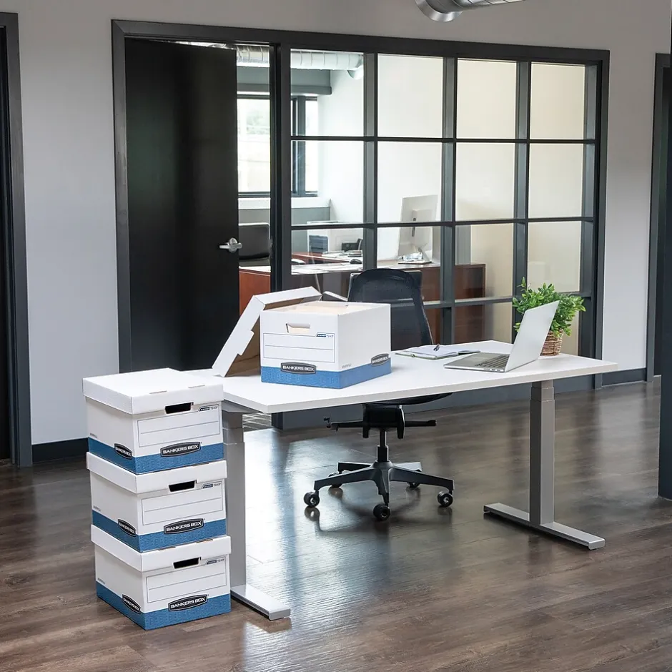Store important documents safely away with these medium-duty letter/legal-size storage boxes. The medium-duty construction lets these boxes stack up to 550 pounds, saving valuable floor space in storage rooms. These Bankers Box Stor/File medium-duty storage boxes come in a carton of 12 units and feature locking lift-off lids that stay firmly in place for secure document storage.