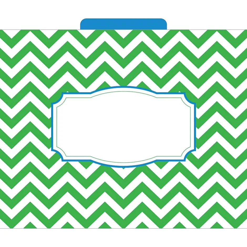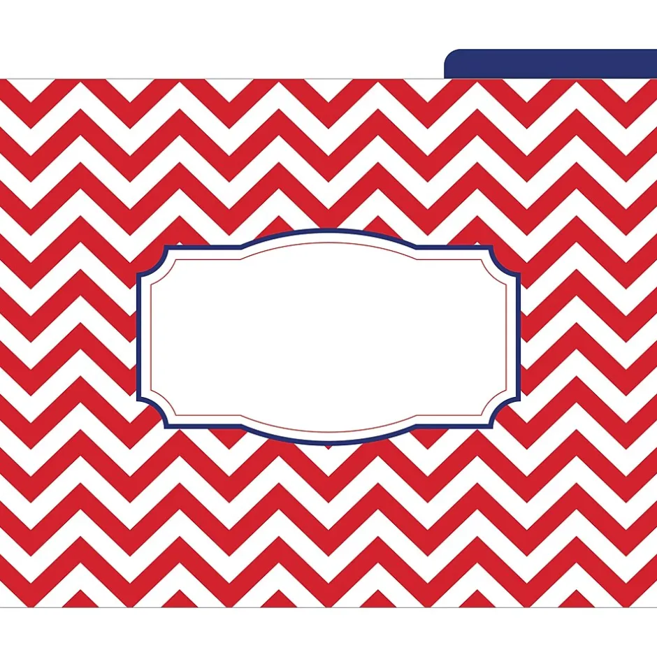 Barker Creek’s Nautical Chevron Letter-Size File Folders are an affordable way to organize your office, classroom, or home with style and flair. This set of stylish desk accessories includes 12 file folders – three each of four colorful designs. The folders are 1/3 tabbed, which means that they have three tab positions – four folders are tabbed on the left, four folders are tabbed in the center, and four are tabbed on the right. The 14-point stock makes these folders perfect for desktop filing, meeting handouts, and student papers. These Nautical Chevron file folders come with a preprinted “label” on the front for adding a table of contents, highlighting meeting agendas, listing the names of team members, bulleting travel itineraries, and so much more. These unique office supplies are fully reversible, each folder having a multicolored design on one side and a soft, solid color on the reverse side. The possibilities are limited only by your imagination! Coordinating products are available. Search: Barker Creek Chevron.