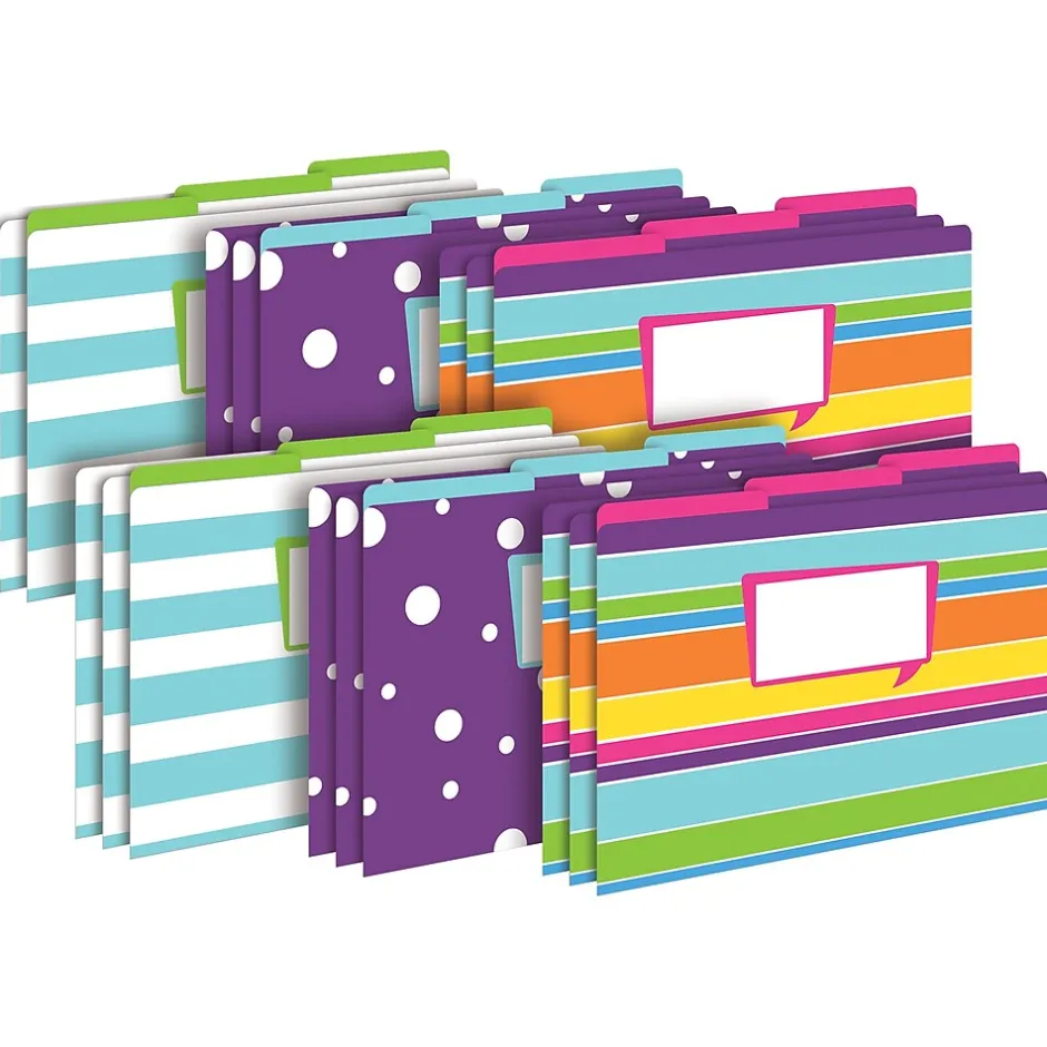 Barker Creek’s Happy legal-sized fashion file folders are raising the style bar for those of us who use legal folders at work, school, and home. Each set includes 18 beautifully designed legal-sized file folders – six folders each of three on-trend designs. The folders are 1/3 cut and printed on durable 12 pt. stock. Fully reversible, each folder has a colorful design on one side and a vibrant, solid color on the reverse side – perfect for color-coding your files, making file folder games and lap books. The possibilities are limited only by your imagination! Coordinating products available: Search Barker Creek Happy.