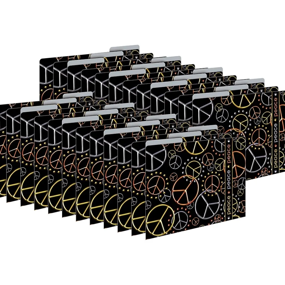 Barker Creek’s Peace letter-sized file folders are a fun and hip way to stay organized. This set includes 24 colorful folders and the inside of the folders are a solid color making each folder fully reversible for added value! The tabs are 1/3 cut and the folders are printed on durable 12-point stock. They are great for everyday filing needs, presenting meeting handouts, organizing important papers, sending work home with students, storing treasured photos and archiving other significant mementos. The possibilities are limited only by your imagination! Coordinating products available: Search Barker Creek Peace.