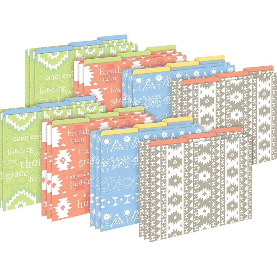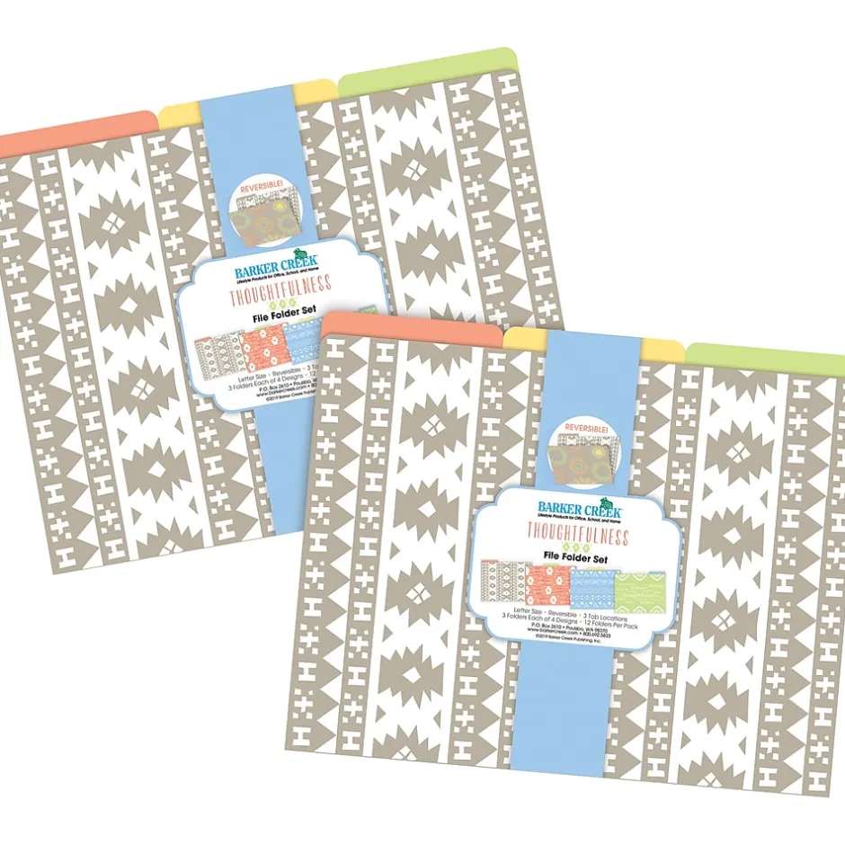 Barker Creek’s Thoughtfulness letter-sized file folders are a fun and colorful way to stay organized. The set includes 24 folders — six each of four beautiful designs. The calm color palette and on-trend designs were inspired by the thoughtfulness, mindfulness, and meditation trends. Coordinating designs are printed on the inside making each folder fully reversible for added value! The tabs are 1/3 cut and the folders are printed on durable 12-point stock. They are great for everyday filing needs, presenting meeting handouts, organizing important papers, sending work home with students, storing treasured photos and archiving other significant mementos. The possibilities are limited only by your imagination! See Barker Creek’s full line of fashion-forward file folders!! Coordinating products available: Search Barker Creek Thoughtfulness.