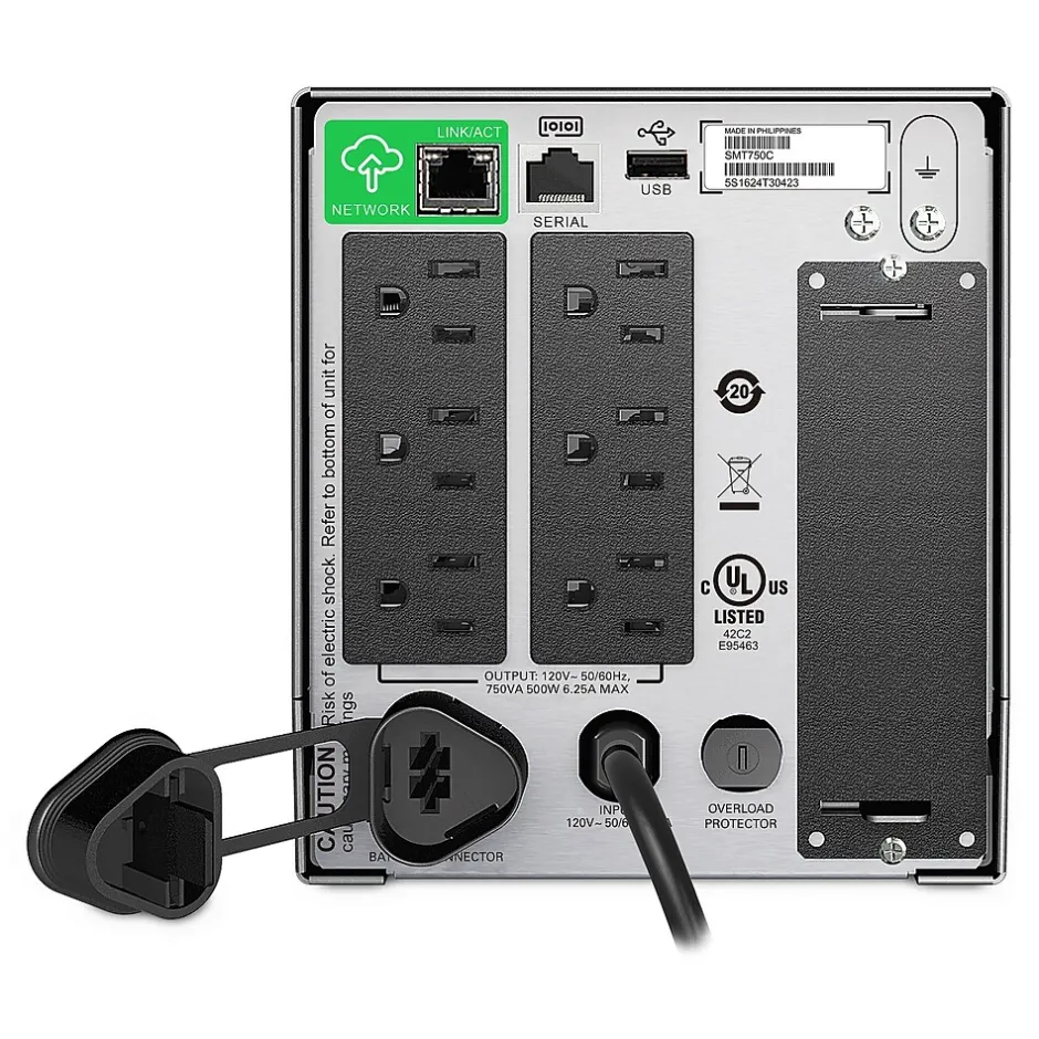 - ENERGY STAR Qualified – Acknowledged for meeting standardized energy efficiency requirements and passing the program’s testing, the Smart-UPS SMT750C has been recognized for its ability to save you money while protecting the environment. Any UPS that is ENERGY STAR Qualified much achieve operational efficiency in the top 25 percent of the market, thus demonstrating the ability to allow you to realize lower electrical operating costs, and a reduced carbon footprint.