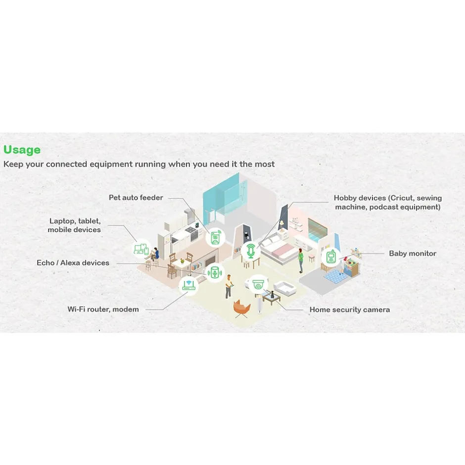 - 6 Outlets (NEMA 5-15R): 4 ups battery backup & surge protector outlets; 2 outlets with Surge Protection Only