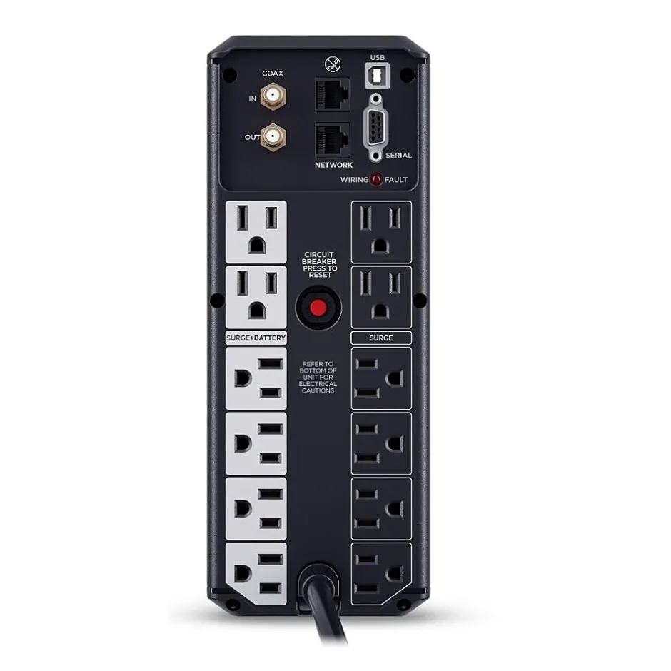 1500VA/900W Intelligent LCD Battery Backup Uninterruptible Power Supply (UPS) System uses simulated sine wave output to safeguard workstations, networking devices, and home entertainment equipment