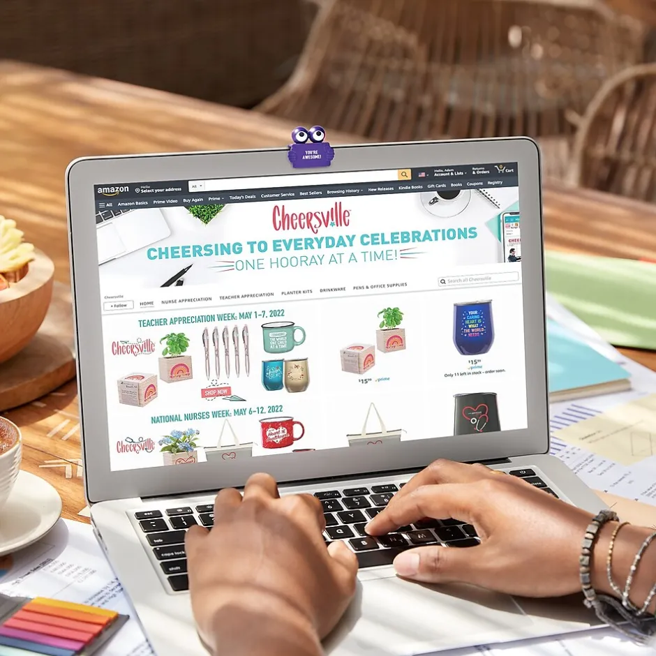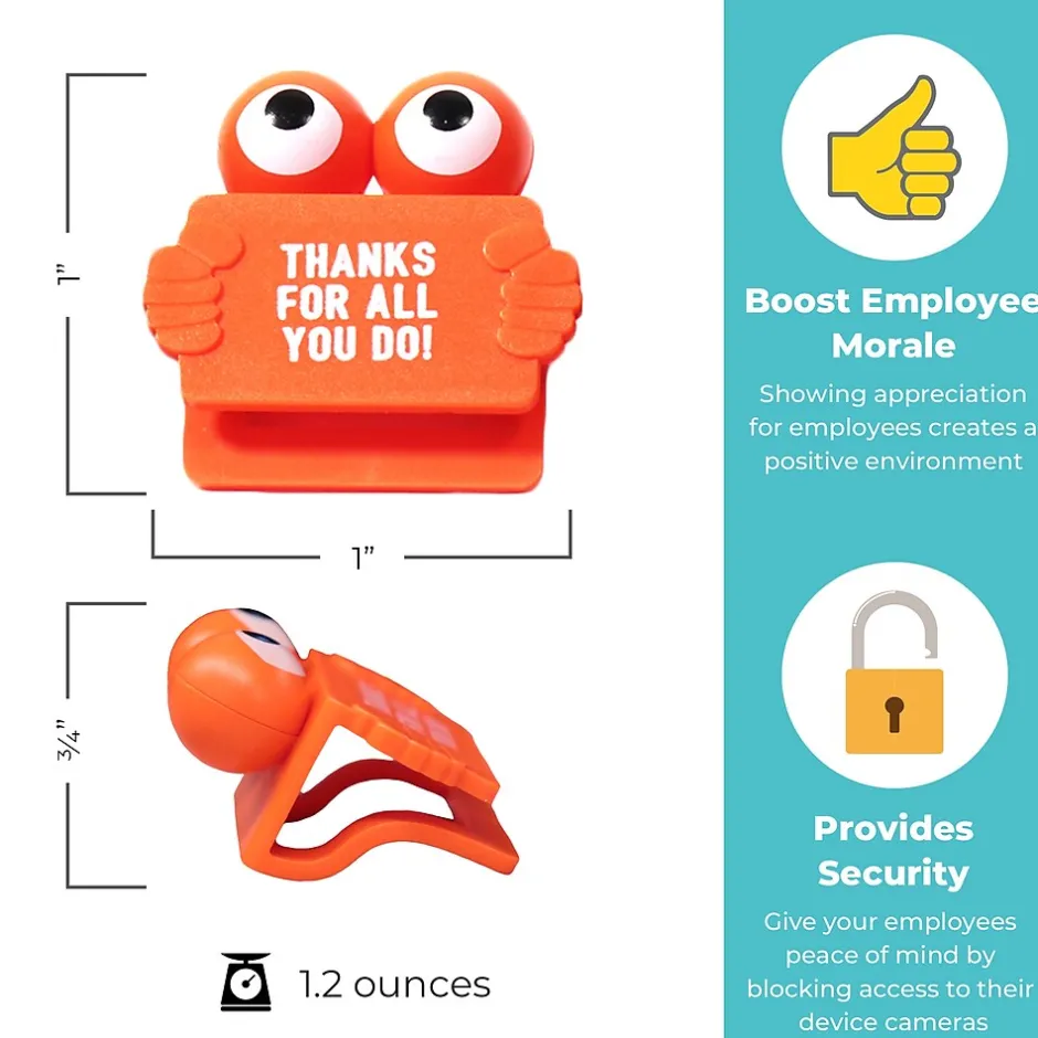 Each plastic web cam cover comes in a different color with its own sentiment and fits most laptops, tablets, or smartphones. Each pack includes 5 covers. Give to employees just because or for day-to-day recognition moments.