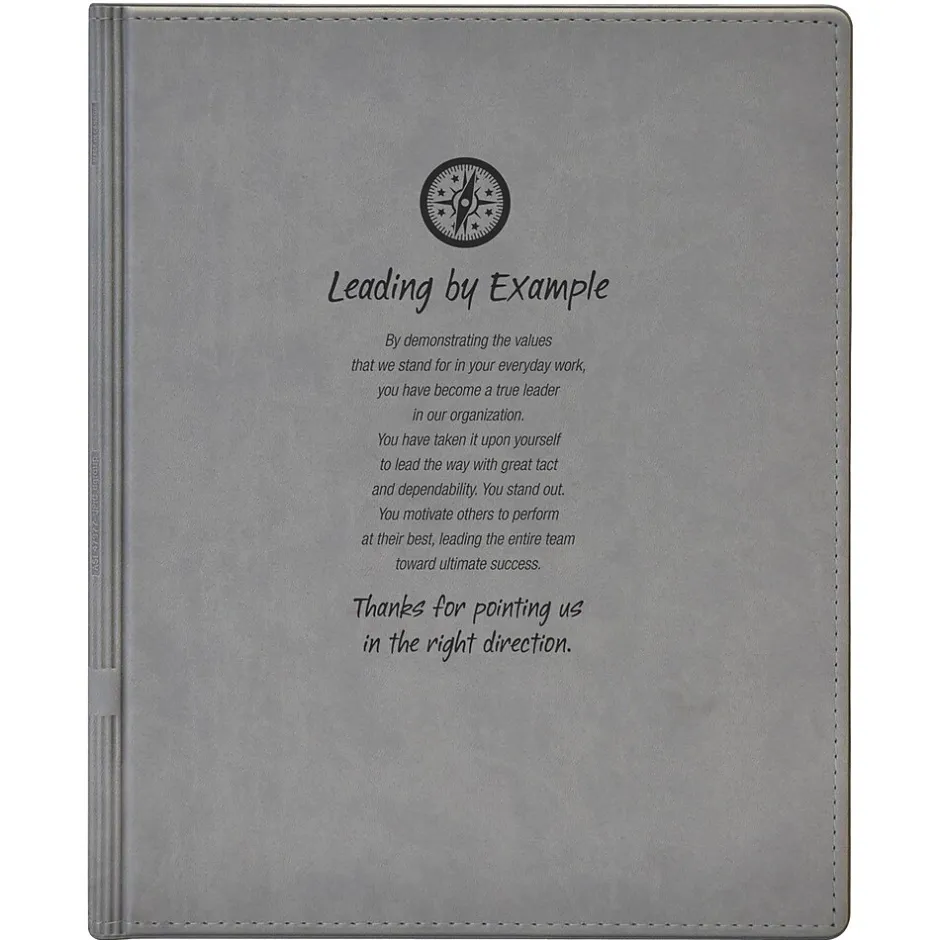 Baudville® Executive notepad holder has an inside pocket with clear sleeve for business card and a pen loop. Notepad holder facilitates personalization and imprinting of “Leading By Example” message. Notepad holder has 100 lined paper sheets.