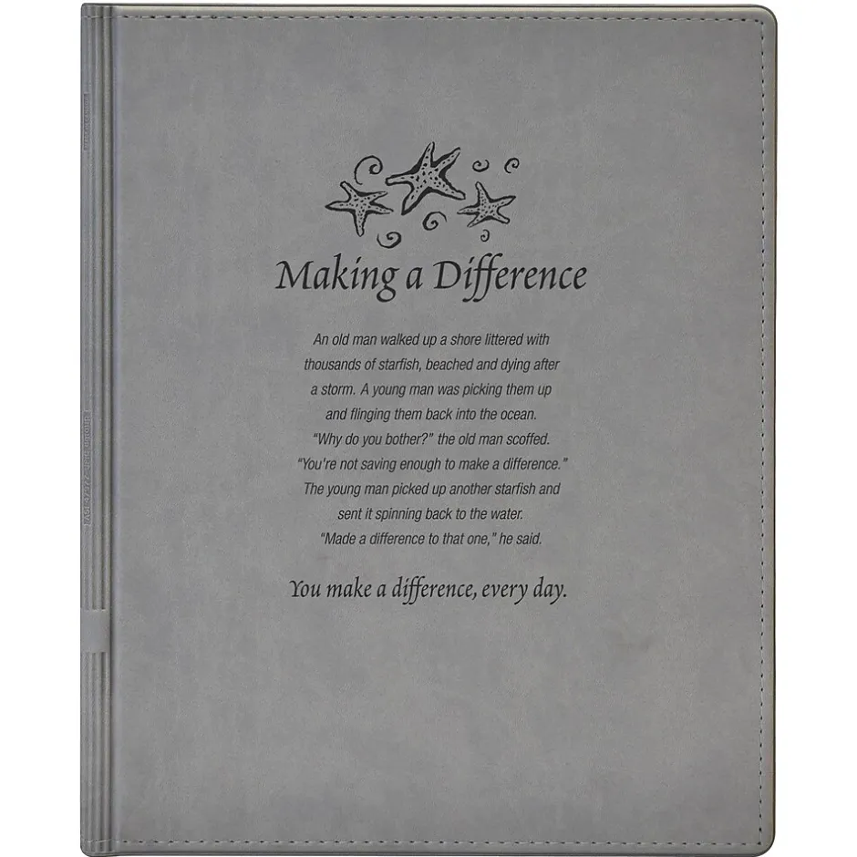 Baudville® Executive notepad holder has an inside pocket with clear sleeve for business card and a pen loop. Notepad holder facilitates personalization and imprinting of “Making A Difference” message. Notepad holder has 100 lined paper sheets.
