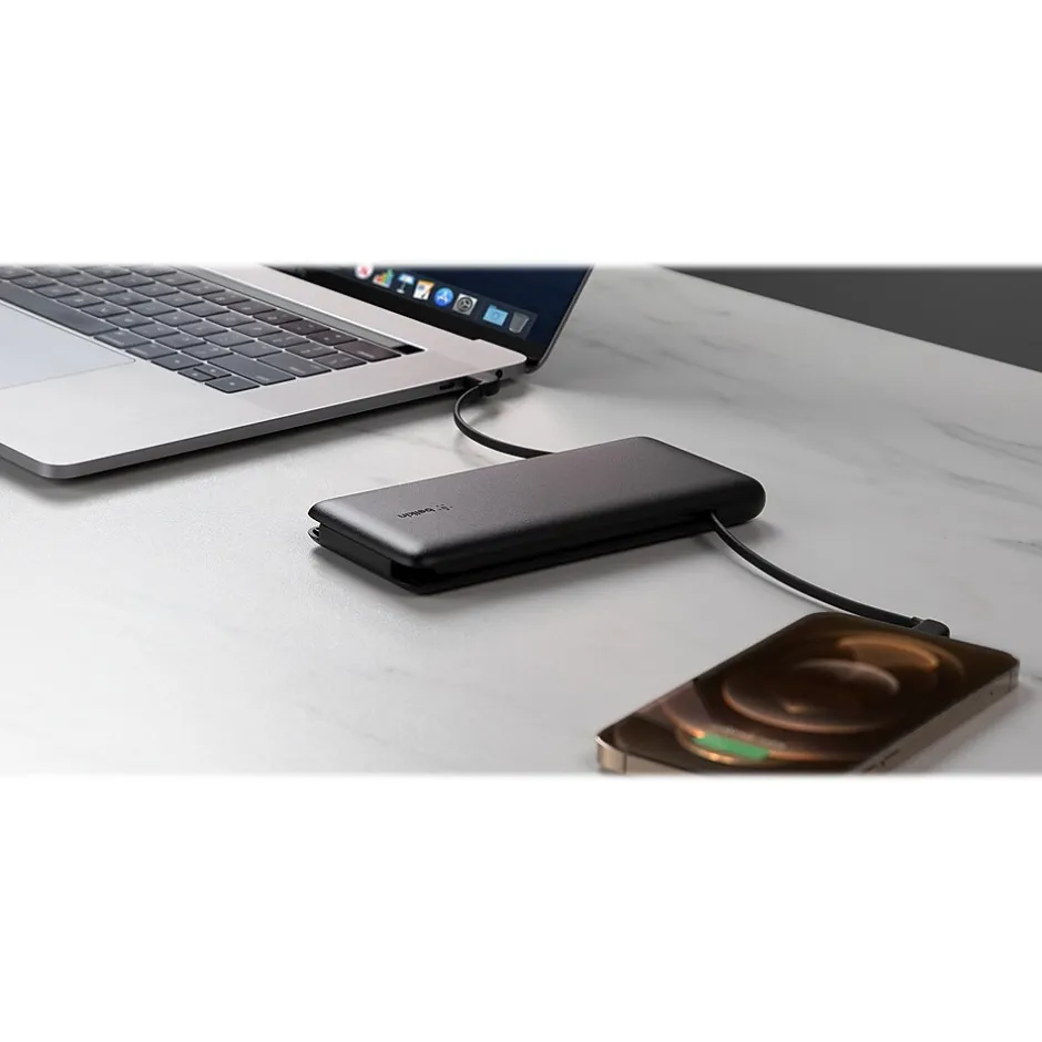 A 10000mAh power bank with integrated cables allows you to charge an iPhone without carrying an additional cord or charge any two devices at once. Charge smartphones and tablets simultaneously with the bank’s USB Type-C and Lightning cables, and enjoy a pass-through that keeps the power bank itself charged while your phone powers up.