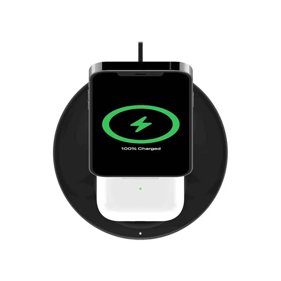 Charge your iPhone 12 series device and AirPods at the same time with this Belkin two-in-one MagSafe wireless charging stand delivering up to 15W to iPhone. Convenience in style, it’s optimized for speed with magnetic connection and bold modern design.