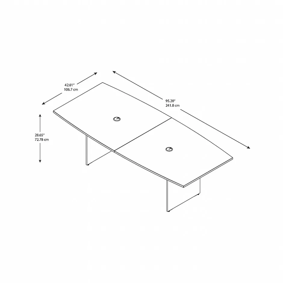 Bring your team together in an open or private office space with the Bush Business Furniture 96W x 42D Boat Shaped Conference Table. The spacious design comfortably seats 6-8 in a variety of environments from board rooms to executive offices or any collaborative setting. A finished underside prevents snagged clothing, while a classic wood base provides durability and includes adjustable levelers for a stable design on any floor. With wire management grommets, the long Conference Table keeps unsightly cables contained. Continuous edge banding protects against nicks and dings from collisions, and the thermally fused laminate finish resists stains and scratches throughout years of everyday meetings. The commercial-grade Boat Shaped Conference Table meets ANSI/BIFMA quality test standards and comes with a Bush Business Furniture Limited Lifetime Warranty. Browse the complete line of Conference Tables, available in a variety of styles and finishes to complement your office. American made with U.S. and imported parts.
