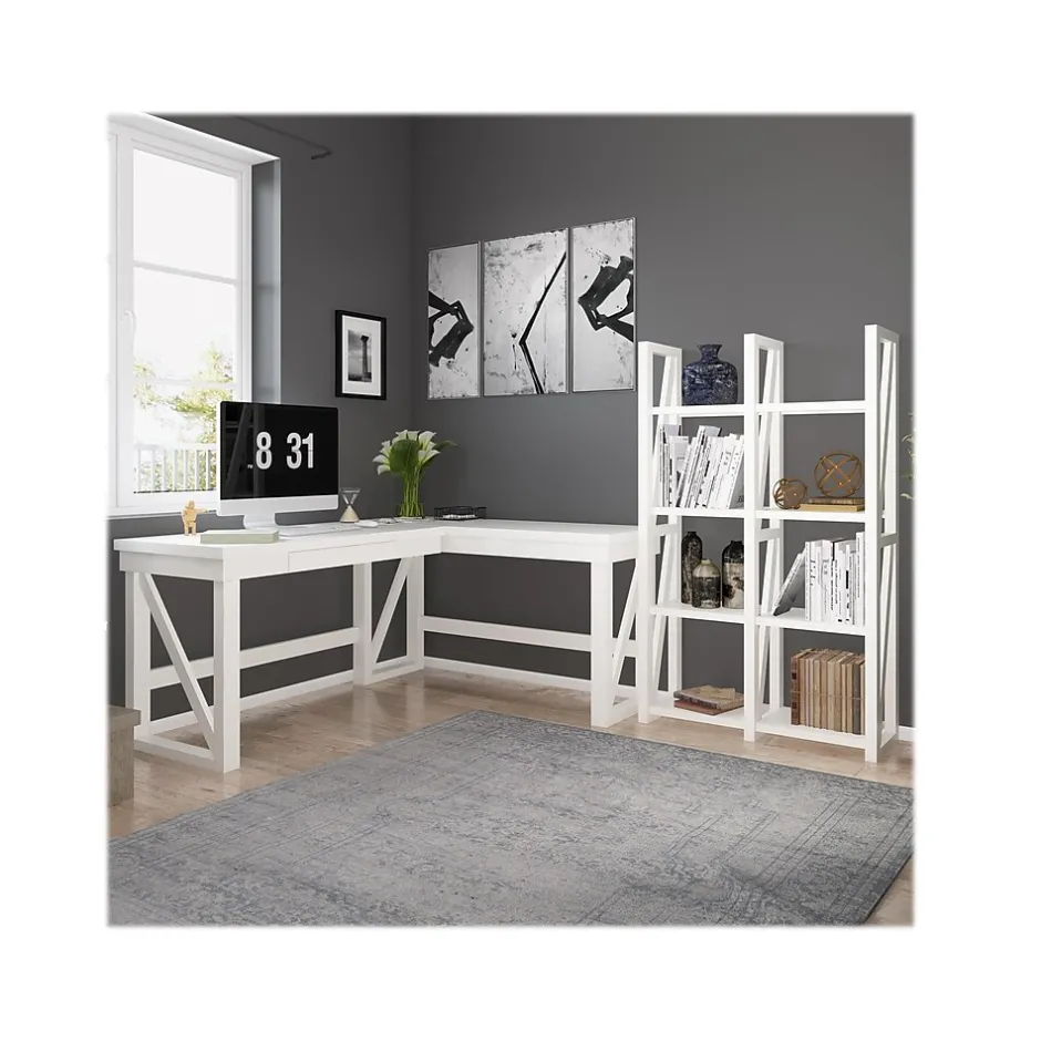 Create a beautiful rustic look in your living room, family room, den, or home office with the Ameriwood Crestwood home bookcase/room divider. This item has eight open shelves to keep your books, knick-knacks, decorative items, photos, and more. Use it as either a bookcase against a wall or get creative and use it to separate large space. The open design that is finished all the way around makes it easy to use in multiple fashions. The weathered white finish with gray rub-through gives this piece the ability to blend with cottage, rustic, shabby chic, or transitional styles. Made with painted MDF, this bookcase/room divider will withstand years of use. A wall anchor kit is included to secure the bookcase to the wall. Two adults are recommended to assemble.