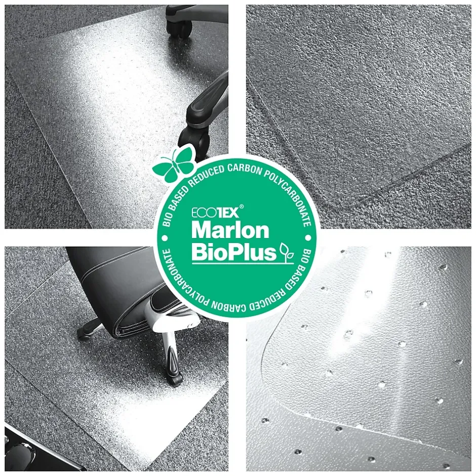 Produced using a “Mass Balancing bio-circular” process with both the resin and chair mat manufacture ISCC certified. (International Sustainability & Carbon Certification). With twice the impact strength of PVC, the perfectly flat and rigid material provides an ergonomic easy glide surface for caster based chairs, which can reduce leg fatigue and lower back strain. Guaranteed not to crack, curl, discolor or smell. Free from Phthalates, PVC and toxic chemicals. An ideal choice for people with allergies. Manufactured in the UK using 100% Renewable Energy, including solar and wind power. The resin manufacture is climate neutral with a 100% reduction in carbon emissions. Contains 89% non-fossil based bio-circular material, such as used cooking oil, for a dramatically reduced impact on the environment. 100% recyclable. Marlon BioPlus mats lie perfectly flat from delivery for immediate use. Limited Lifetime Warranty.