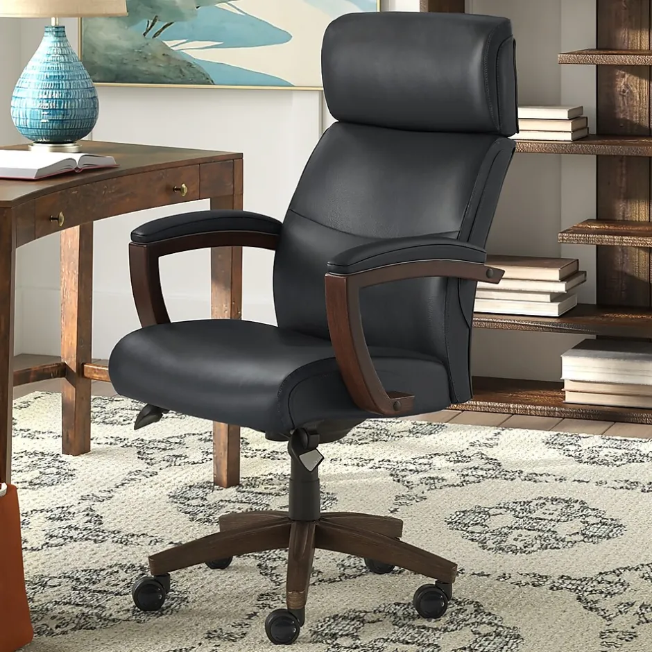 Keeping your home modern but cozy is not always an easy task, but somehow the La-Z-Boy Greyson executive chair makes it simple. Don’t take the word “executive” too literally here: while the Greyson chair works perfectly nestled up to an office desk, it’s equally at home in a more laid-back setting for gaming, entertaining, and reading. Mixing sleek bonded leather with solid wood accents, much like famed designers Eames did in the 50s, this contemporary chair offers stunning eye appeal that’s worth a second look. Ergonomic and adjustable, this La-Z-Boy office chair allows you to control the height and tilt to suit your sit positioning and give you an optimized body alignment. La-Z-Boy office chairs are designed to put your comfort first with quality that’s built to last, so your work day is always engaged and productive.