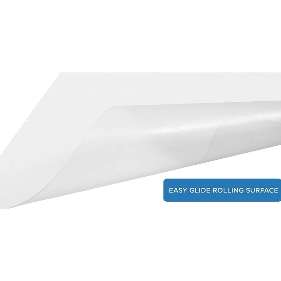 The MI-7818 mat has a smooth surface on both sides, so it is suitable for a variety of flooring including hardwood, tile, linoleum, vinyl, and even carpet! You will be able to glide across the mat smoothly so you can quickly get into a position that is most comfortable for you. Measures 35.5 inches wide x 47 inches long. The lip extension measures 19.25 inches. Lip extension protects the floor under your desk, and prevents your office chair from moving off of the mat.