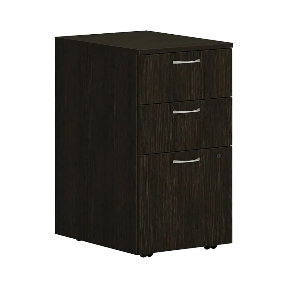 There is always beauty in simplicity, but with the Mod desk collection you’ll also find variety and value. The contemporary design feels perfectly at home in either a private office or an open floor plan, giving it the versatility that allows you to unify your space. Whether setting up a single desk, shared workstations, or full private office suite with storage, this collection is totally adaptable. Totally productive. Totally Mod. This three-drawer mobile pedestal cabinet includes two box drawers for supplies and one file drawer for documents.