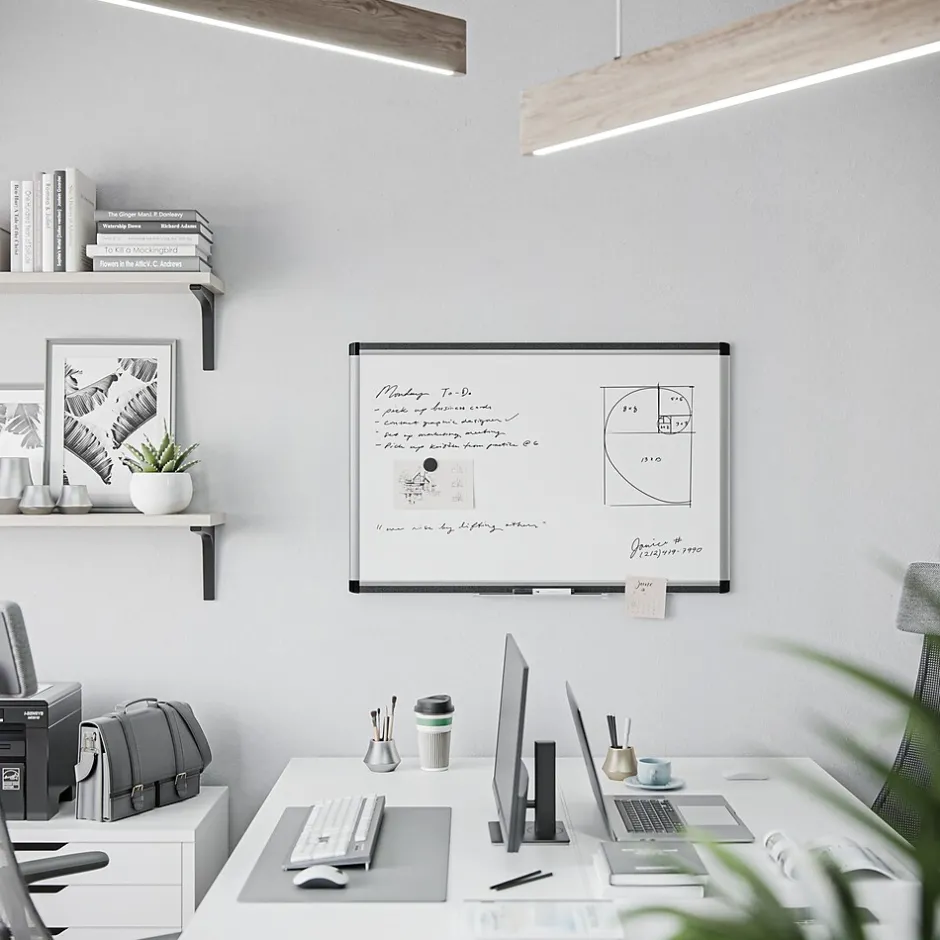 This U Brands dry-erase whiteboard features magnetic surface that is highly durable, erases easily, and resists staining and ghosting. Painted steel dry-erase surface with built-in cork strip frame.