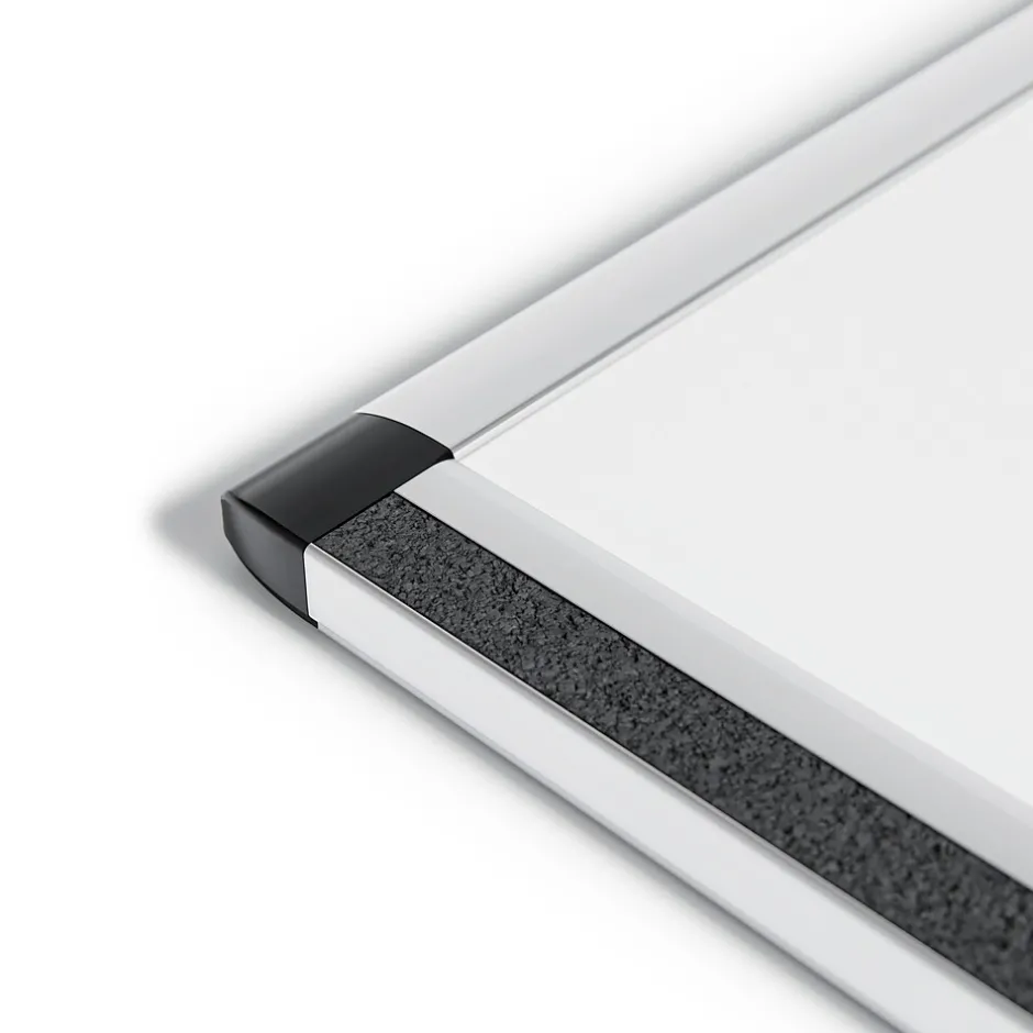 - Painted steel magnetic dry-erase surface with built-in cork strip frame is highly durable, erases easily, and resists staining and ghosting