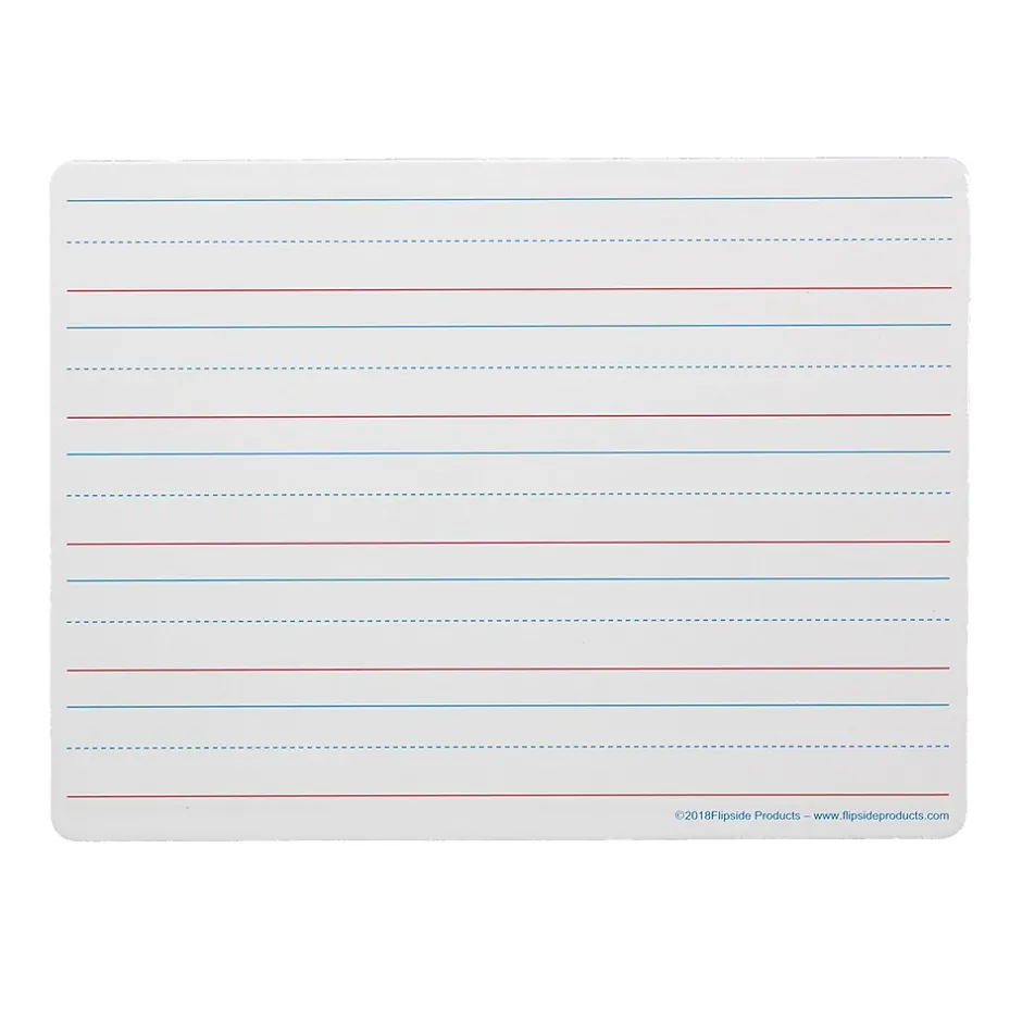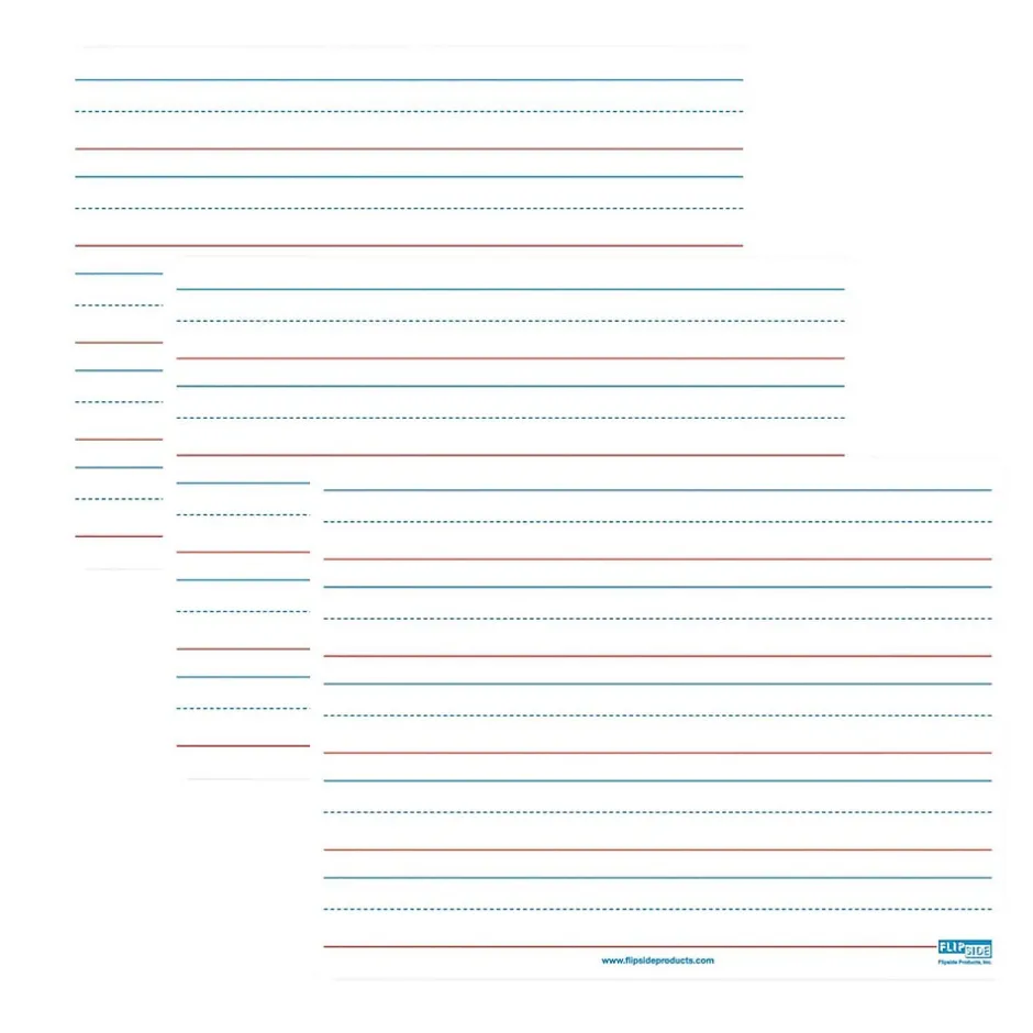 Ideal for teaching and practicing fundamentals for early learners and for use with magnetic manipulatives. Bright white board contains 5 sets of blue headline and broken midline plus red baseline format. Each line set measures 1-1/8″ with 3/8″ of blank descender space between sets. Back side is magnetic, plain, white dry erase. Boards feature a non-ghosting dry erase surface with rounded corners and smooth edges for comfort and safety. Backing is warp and chip resistant. Measure 12″ x 9″ x 0.125″ thick. Pack of 3 Dry Erase Boards.