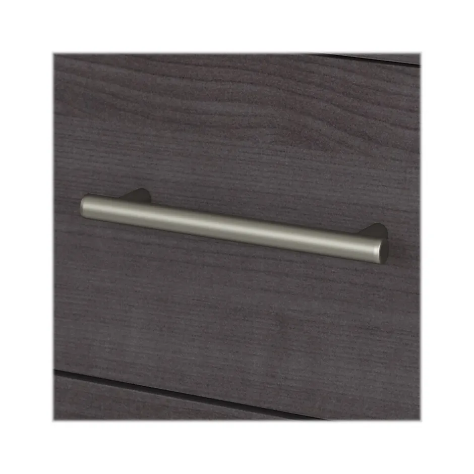 - Laminated over composite wood in a storm gray finish