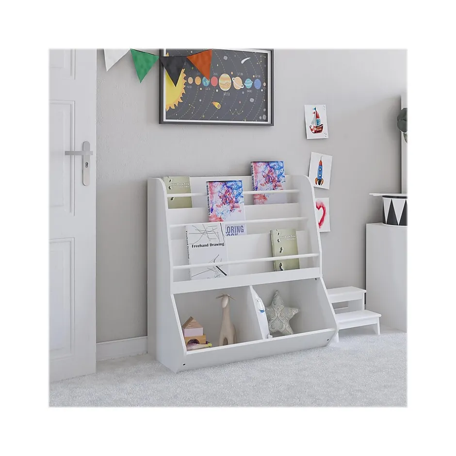 - Kids’ book and toy storage bookcase made of particleboard in a white laminate finish