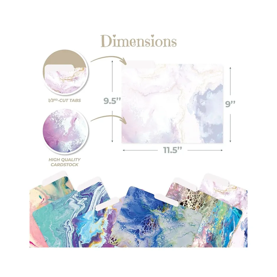 - Features sizable 1/3-cut left/center/right tabs to customize with pen, pencil, or marker