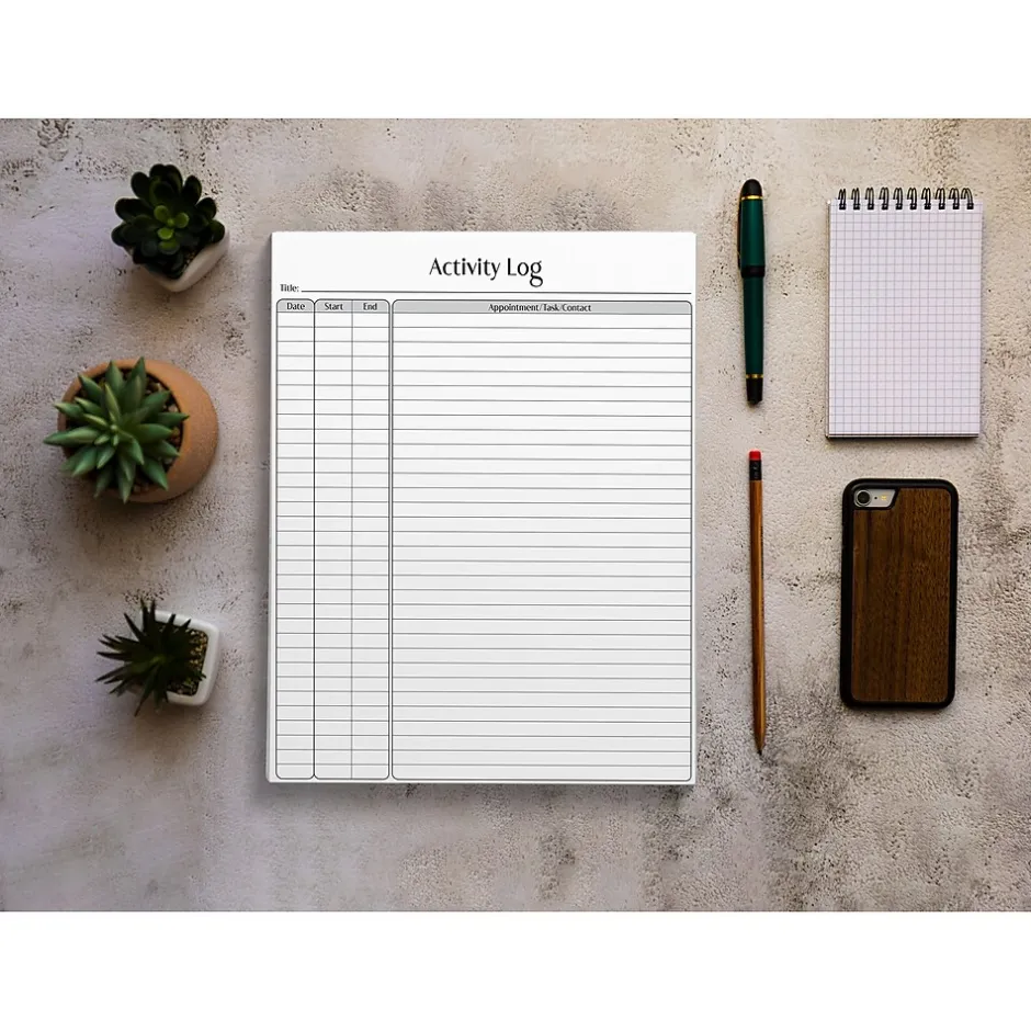This Activity Log 50-sheet notepad by Better Office features thick sheets with an attractive and simple design. Its gummed top binding allows the 8.5″ x 11″ letter-size sheets to be easily torn off. Use it to keep track of all your goals, activities, deliverables, and projects.