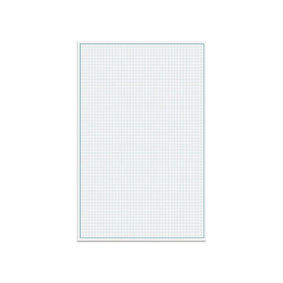 - Quadrille-ruled on both sides, with four squares per linear inch; the 10.5″ x 16.5″ grid is surrounded by a thick blue border