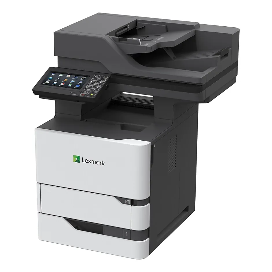 Output up to 70 ppm* and a standard hard disk help the flexibly configurable, OCR-equipped Lexmark MX722adhe monochrome multifunction product meet large-workgroup needs. Steel frames and a robust paper feeding system that reliably handles diverse media types and sizes support heavy-duty use and a long life in even the harshest environments. Plus, innovations in part replacement and accessibility help you resolve problems quickly.