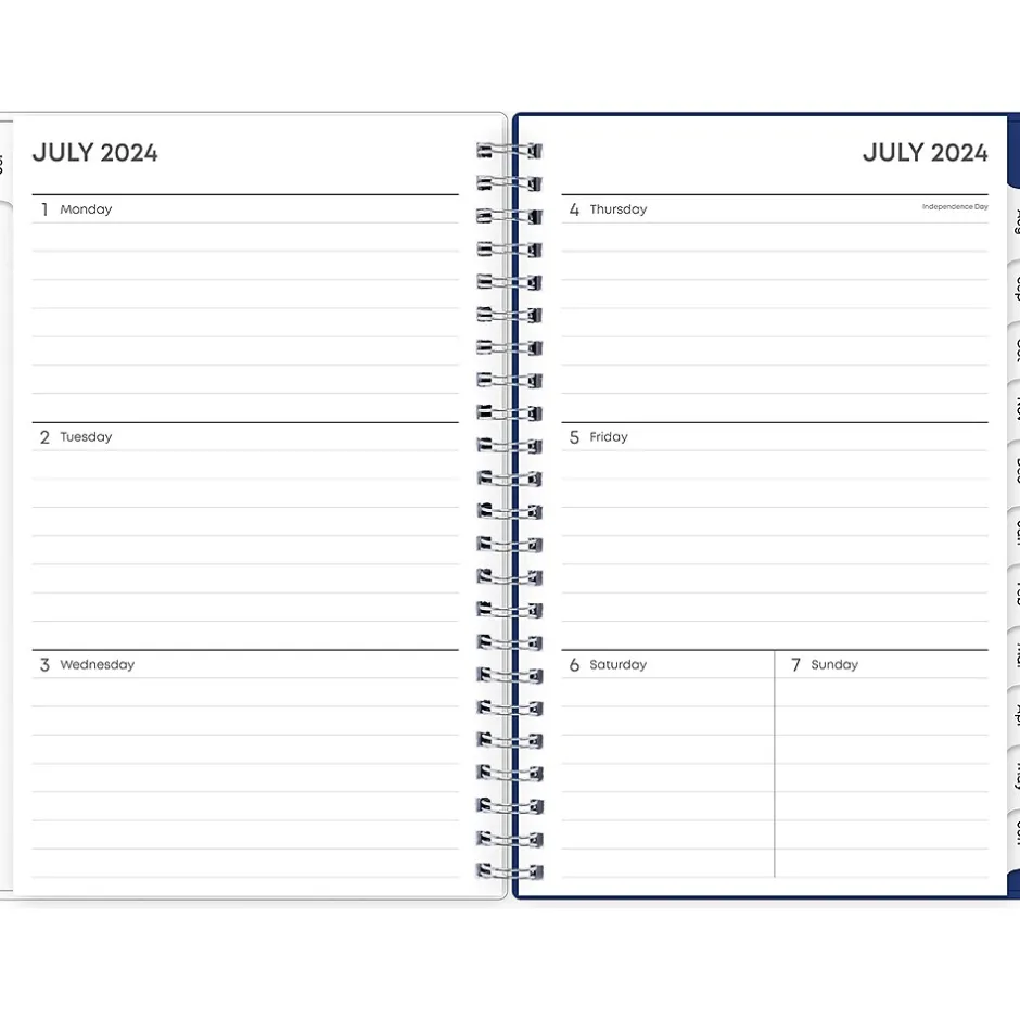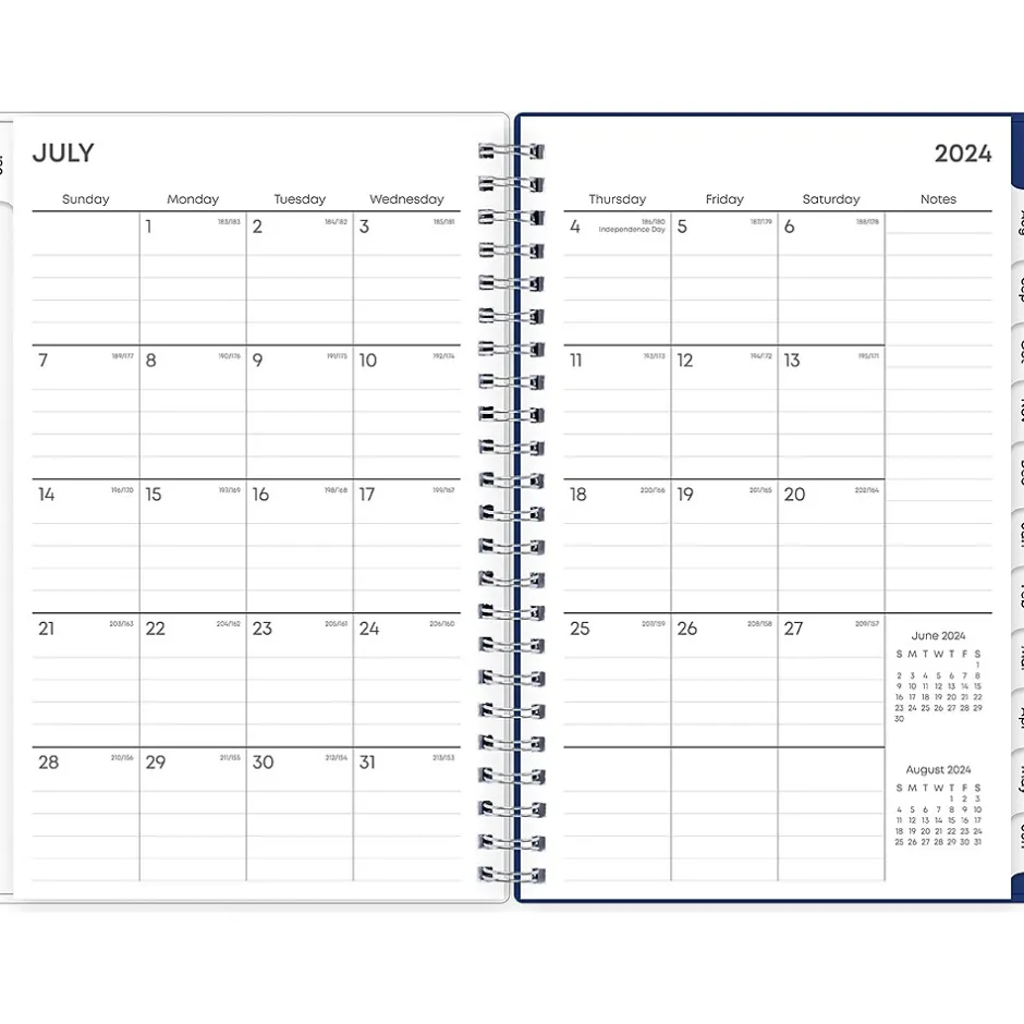 - Offers one month per two pages and one week per two pages, with space for notes and quick reference calendars