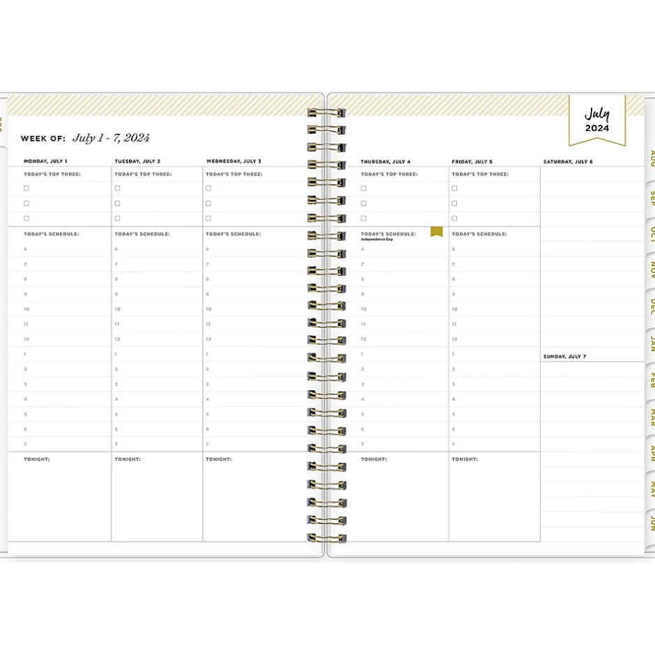 - Weekly and monthly academic planner covers a 12-month date range from July 2024 to June 2025