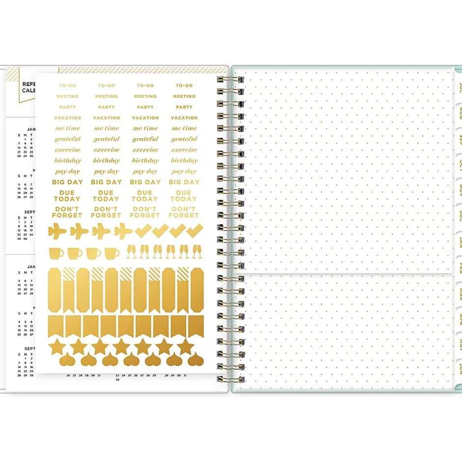 Part planner, part notebook, this Blue Sky Day Designer Flower Field Mint planner is your all-in-one solution for school. With 30 pages for notes, weekly pages, and tabbed monthly views, the planner provides ample writing space for work or school. Includes a storage pocket, stickers, and goal setting pages.