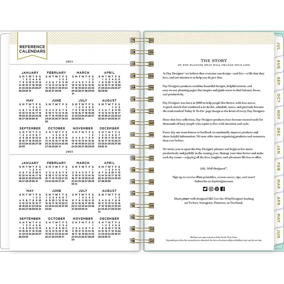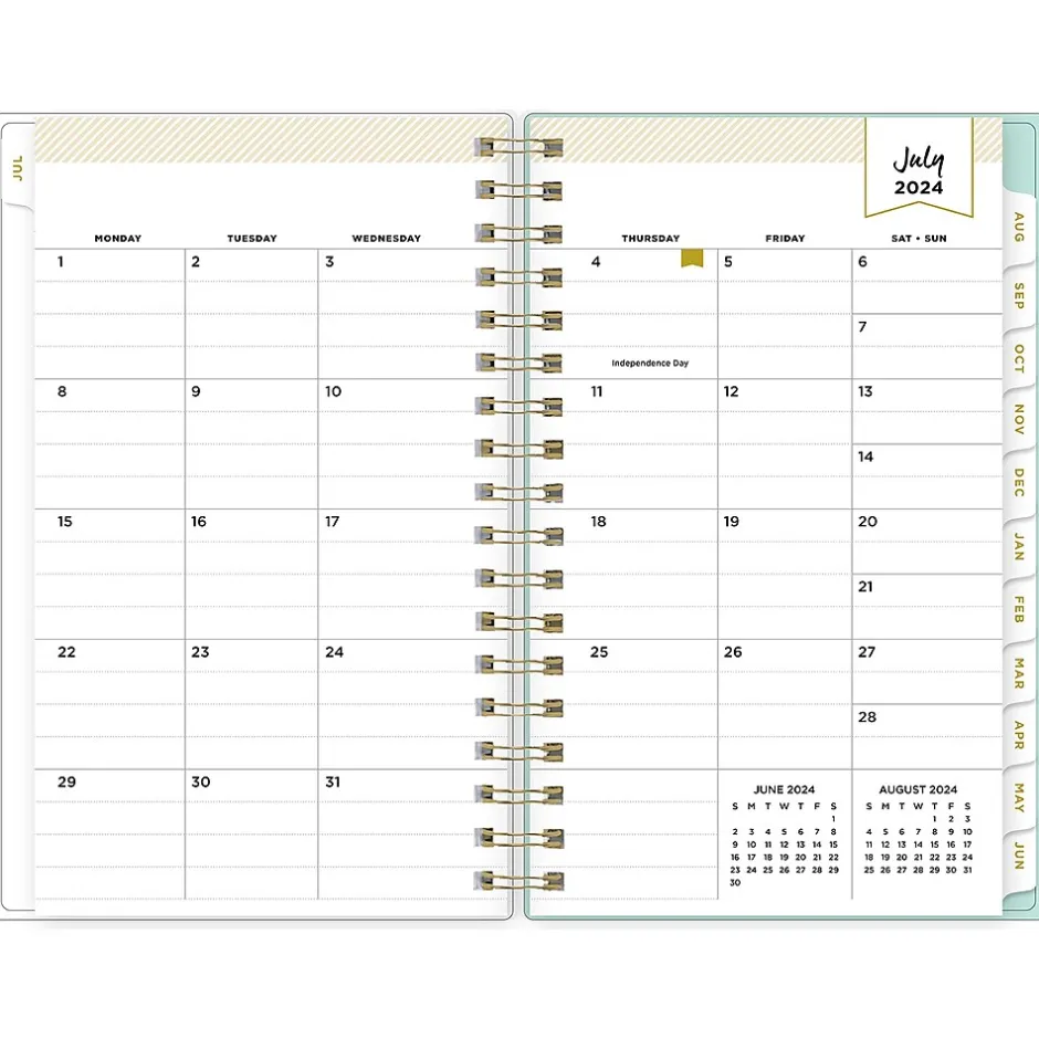 Plan on the go with a tiny planner that fits in your coat pocket. Smaller and lighter for everyday travel, the Blue Sky Day Designer Flower Mint pocket planner has lined weekly pages, tabbed monthly views, and notes pages. Also includes pages for your goals, contacts, and important dates.
