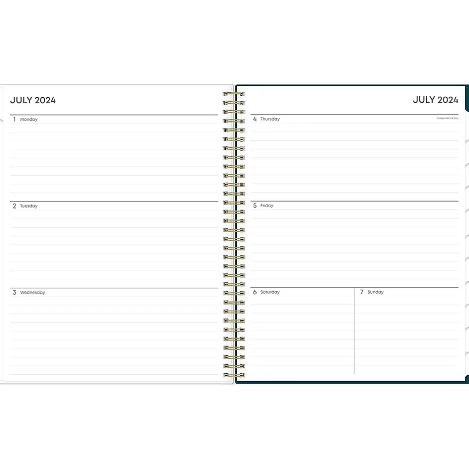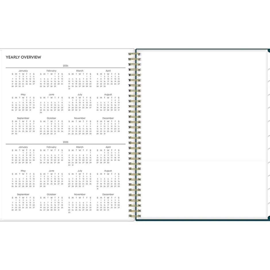 - Offers one month per two pages and one week per two pages, with space for notes and quick reference calendars