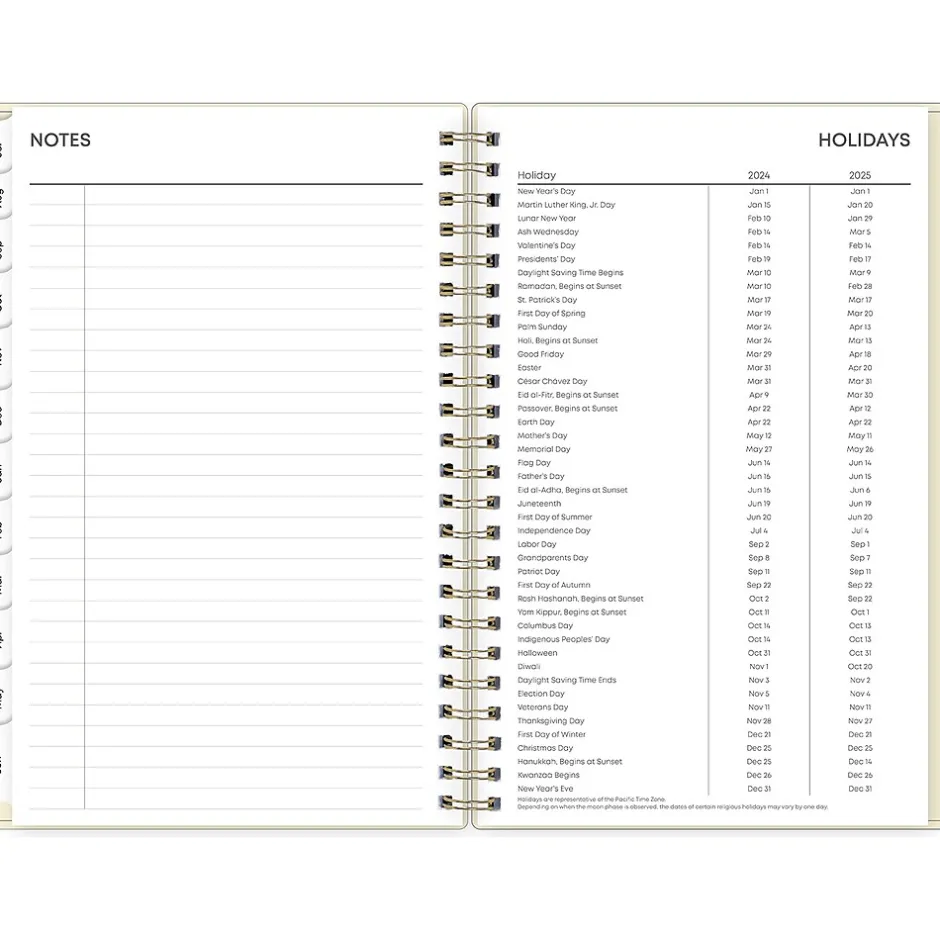 - Features two-page weekly and monthly spreads with space for notes and quick reference calendars