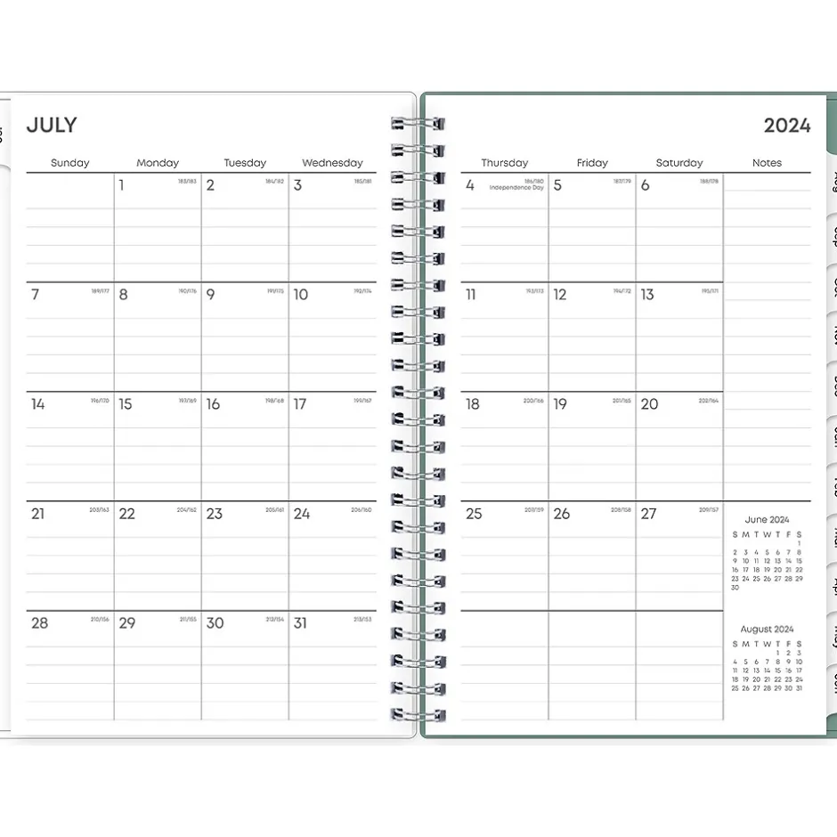 - Features two-page weekly and monthly spreads with space for notes and quick reference calendars