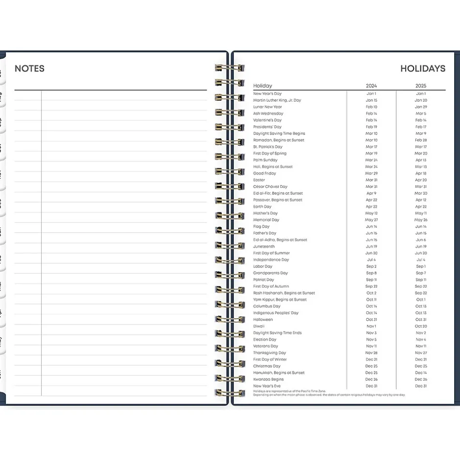 - Features two-page weekly and monthly spreads with space for notes and quick reference calendars