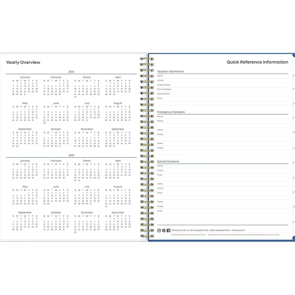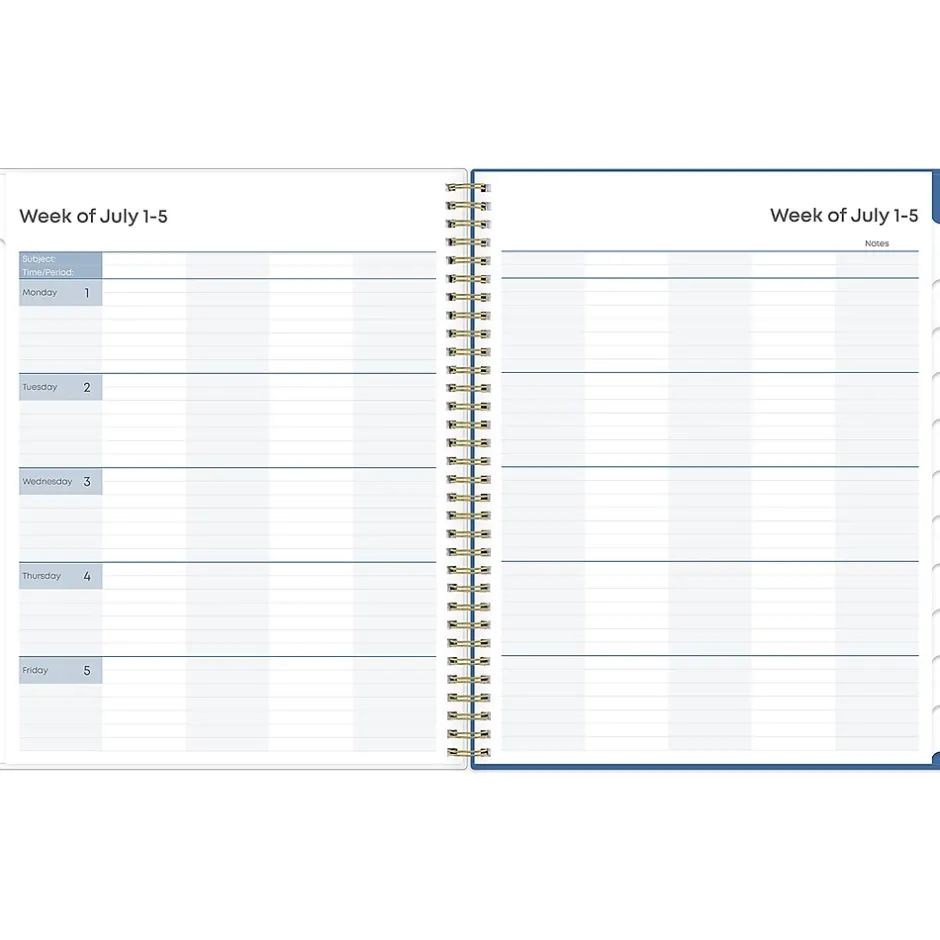 Blue Sky teacher lesson planners keep you focused and organized. The Raquel teacher lesson planner has weekly planning space for up to nine classes or subjects. The monthly pages are tabbed and offer plenty of room for notes. Extras include a storage pocket and pages for weekly activities, class birthdays, and holidays.