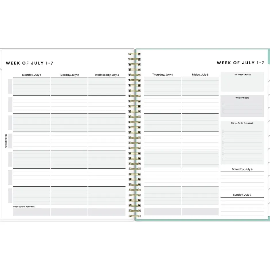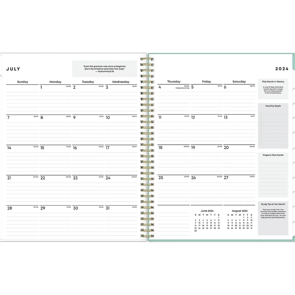 Create a study plan and stay organized with a student planner from Blue Sky. The Sandra Check student planner includes a class schedule page, weekly planning pages, monthly views with quotes, project and assignment trackers, and a storage pocket. Perfect for high school students, this 2024-2025 planner helps students feel less stressed and ready to succeed.