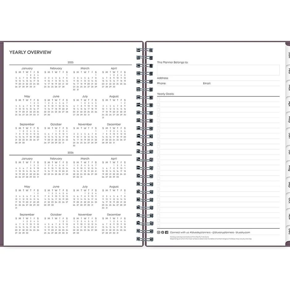 The best of both worlds: a planner with a built-in notebook. This all-in-one planner includes 30 lined pages for notes, weekly pages, and tabbed monthly views. Track dates, goals, and feedback in one convenient place. This Blue Sky planner offers plenty of room for your schedule and a sleek, professional look.